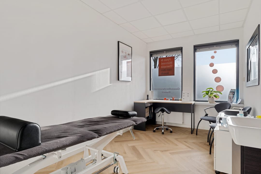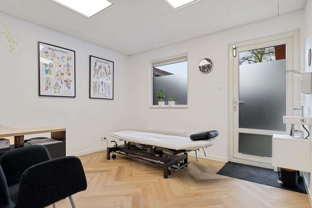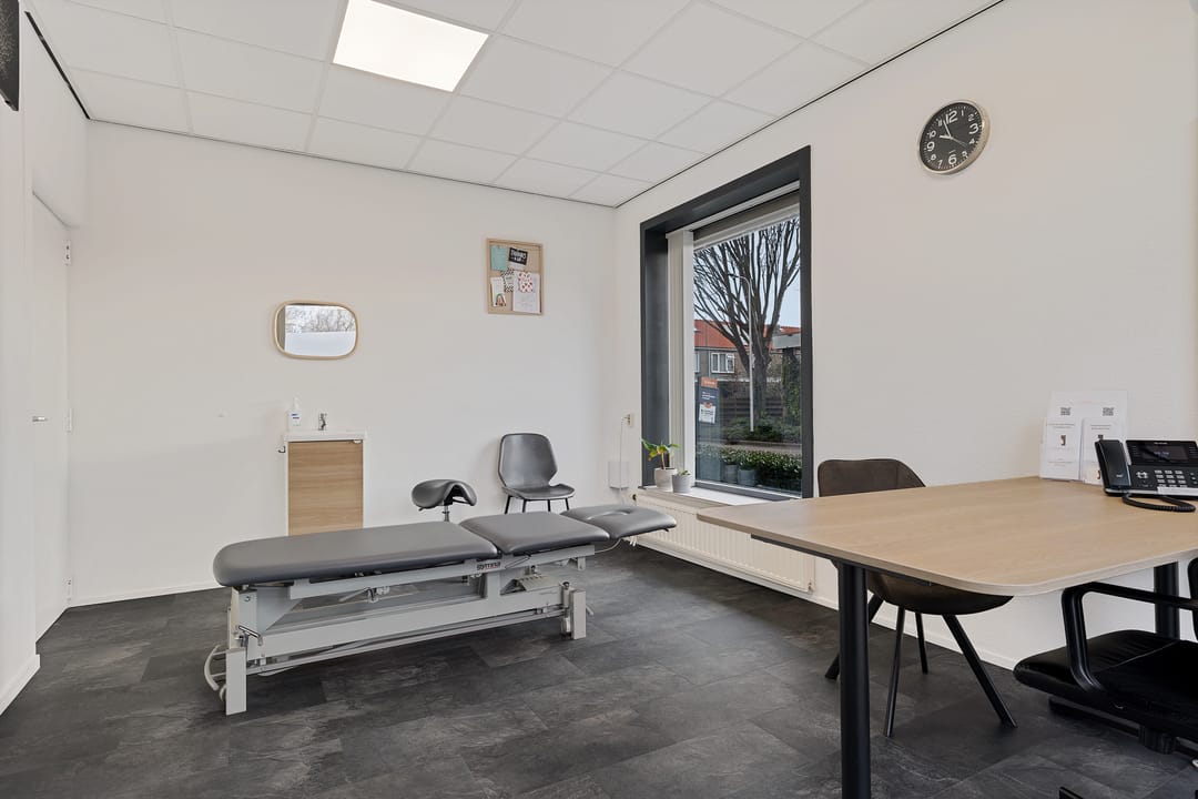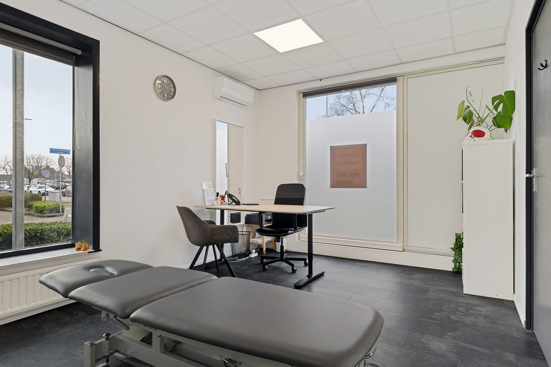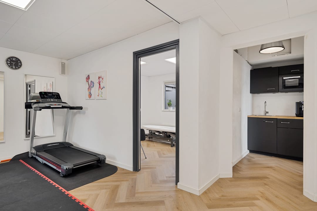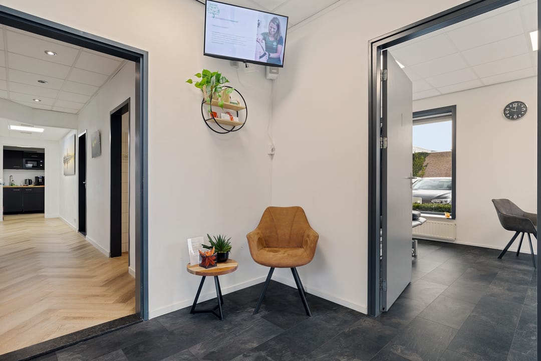 Vanuit hier zijn meerdere ruimtes bereikbaar, waaronder diverse behandelkamers, een fitness-/oefenruimte en een multifunctionele ruimte. De indeling is praktisch en flexibel en daardoor geschikt voor uiteenlopende doeleinden zoals een fysiotherapiepraktijk (huidige gebruiker/huurder), salon, kantoor, praktijk of andere dienstverlening.