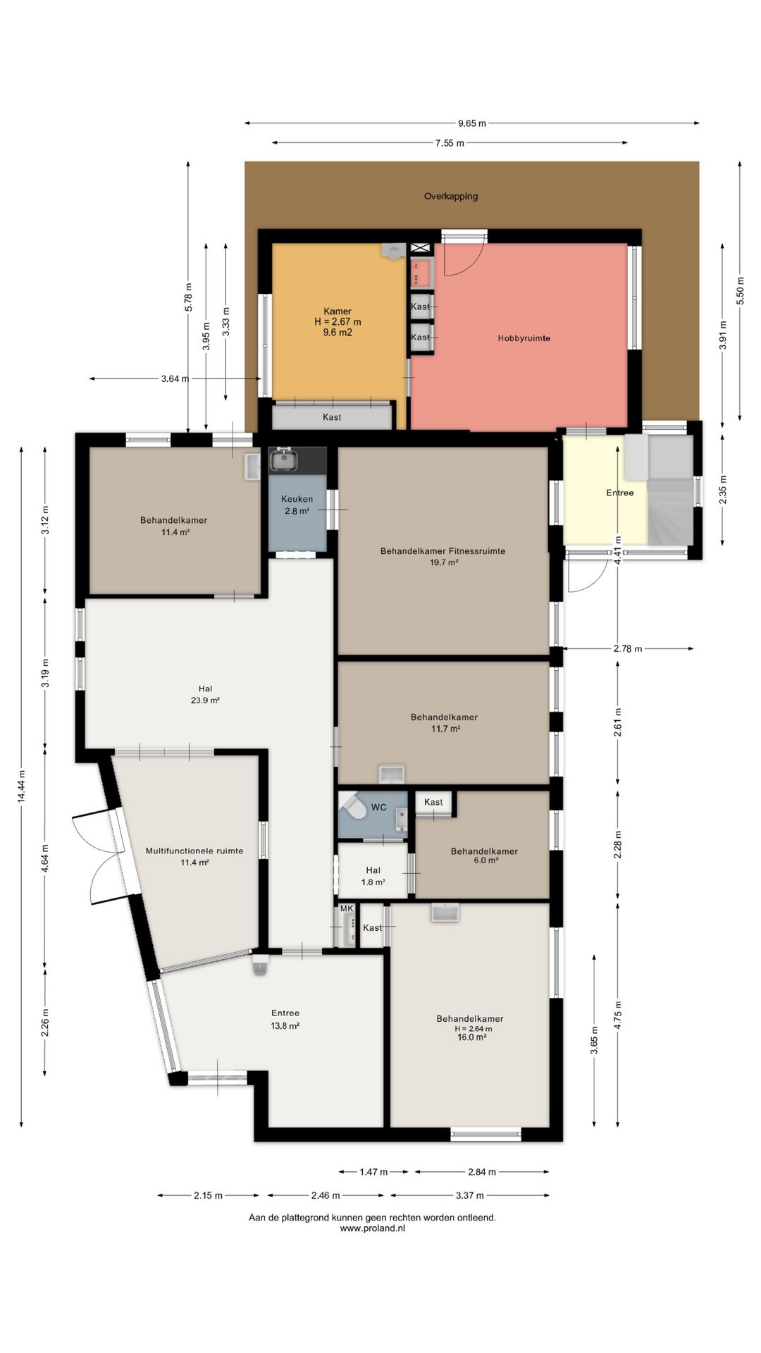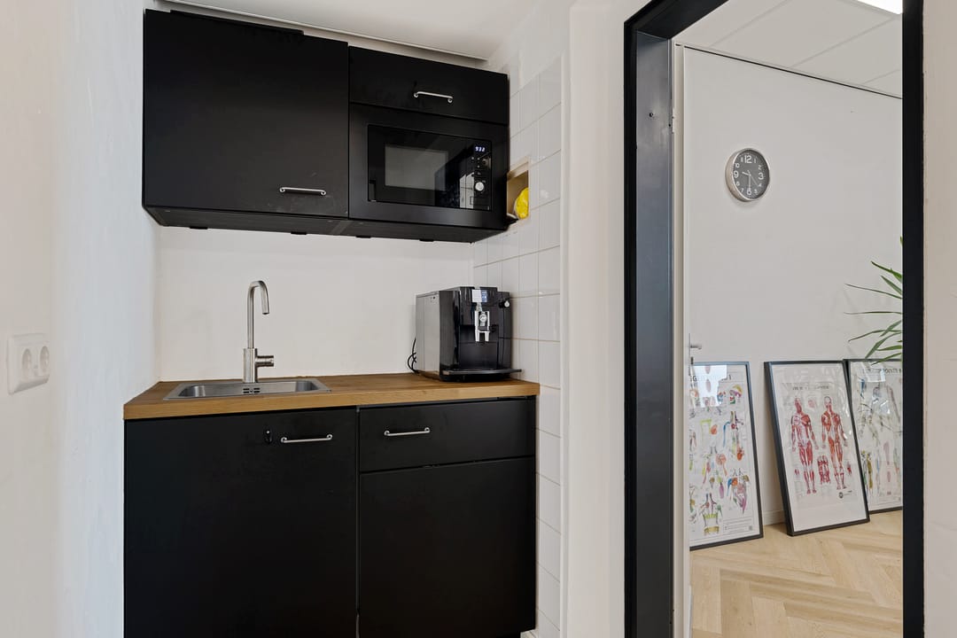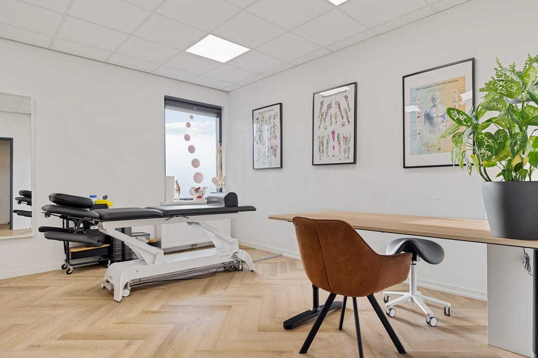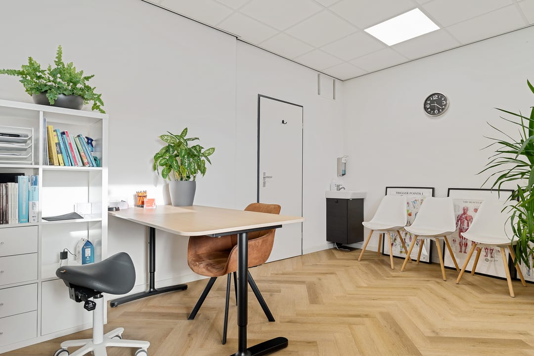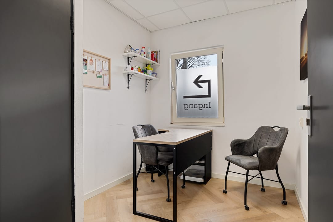 Vanuit hier zijn meerdere ruimtes bereikbaar, waaronder diverse behandelkamers, een fitness-/oefenruimte en een multifunctionele ruimte. De indeling is praktisch en flexibel en daardoor geschikt voor uiteenlopende doeleinden zoals een fysiotherapiepraktijk (huidige gebruiker/huurder), salon, kantoor, praktijk of andere dienstverlening.