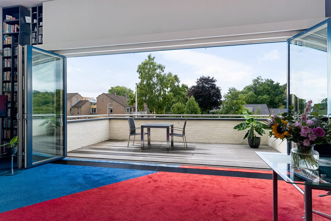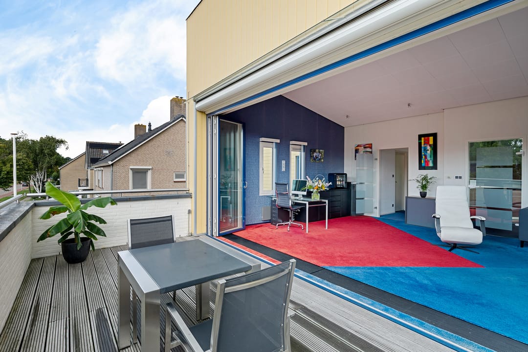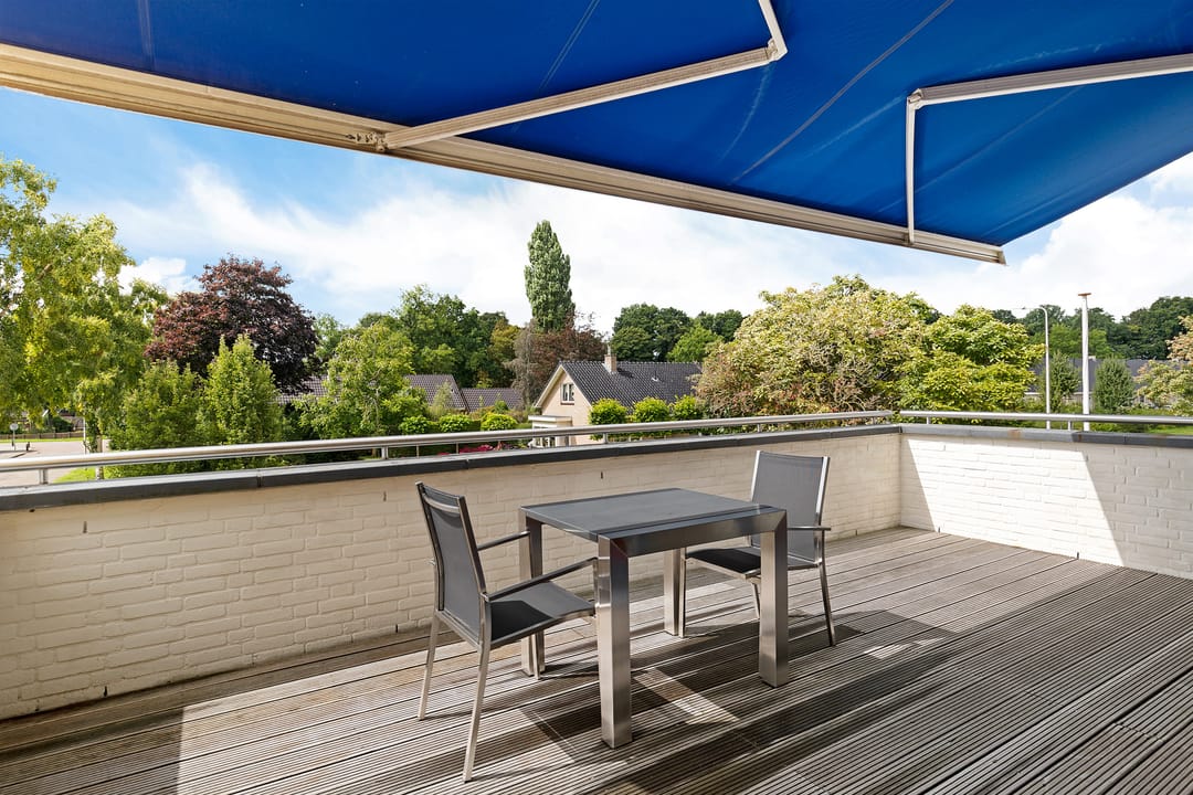 Hier kun je ’s ochtends in alle rust genieten van een kop koffie, terwijl je uitkijkt over de groene omgeving. In de middag en avond is het terras een heerlijke plek om samen te eten of te borrelen, en op warme zomeravonden is het dé plek om tot laat buiten te zitten. Met een volledig geopende pui haal je het comfort van binnen naar buiten en andersom. Dankzij de ligging op de eerste verdieping heb je bovendien veel privacy en een vrij uitzicht.