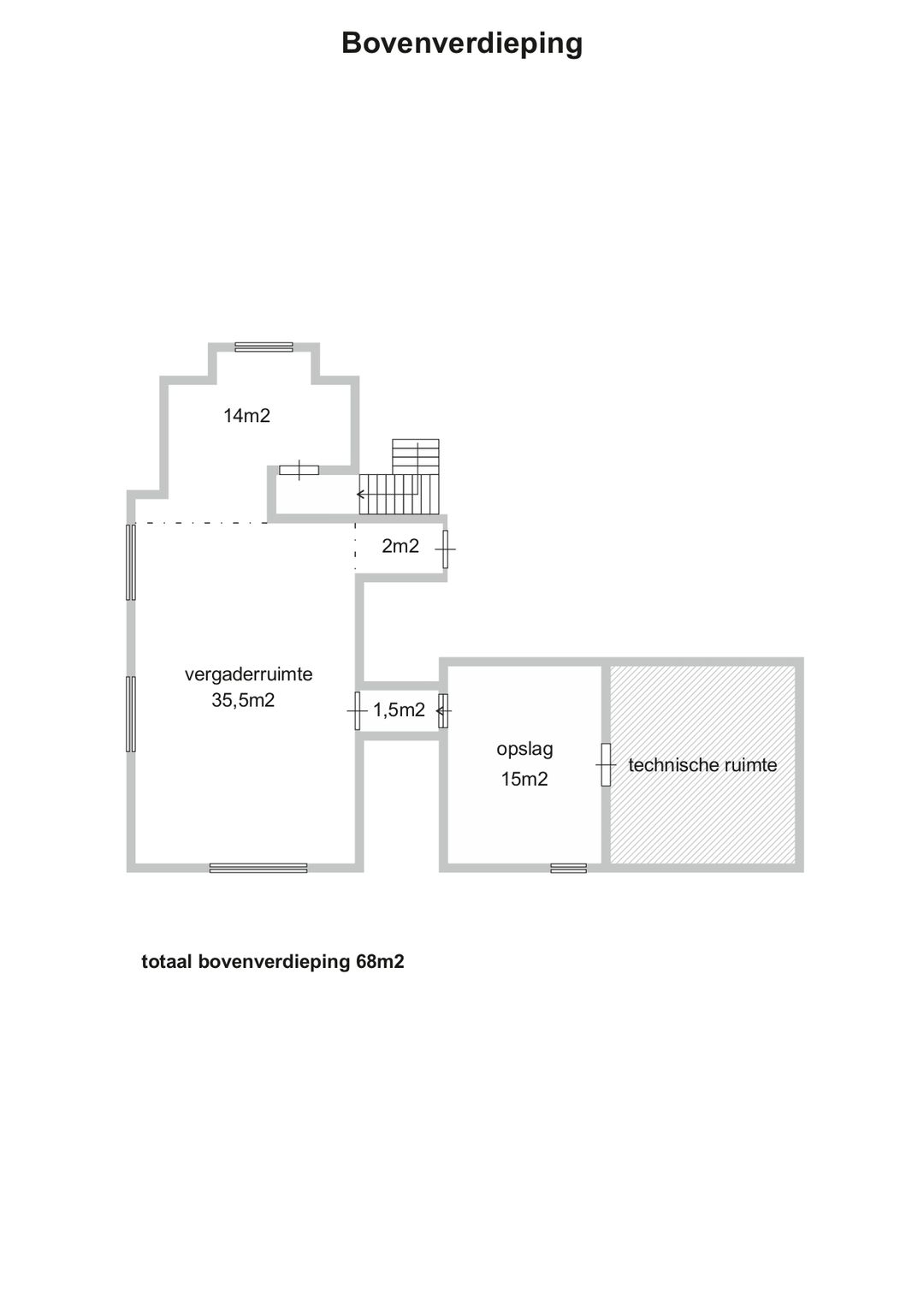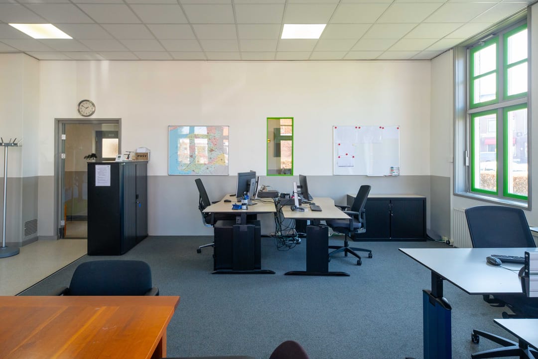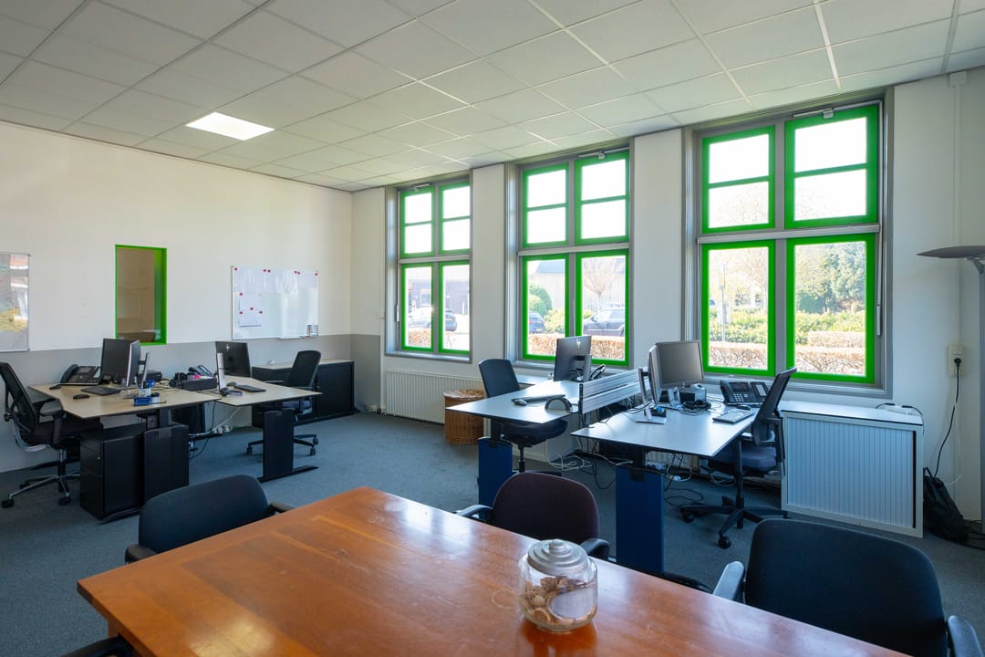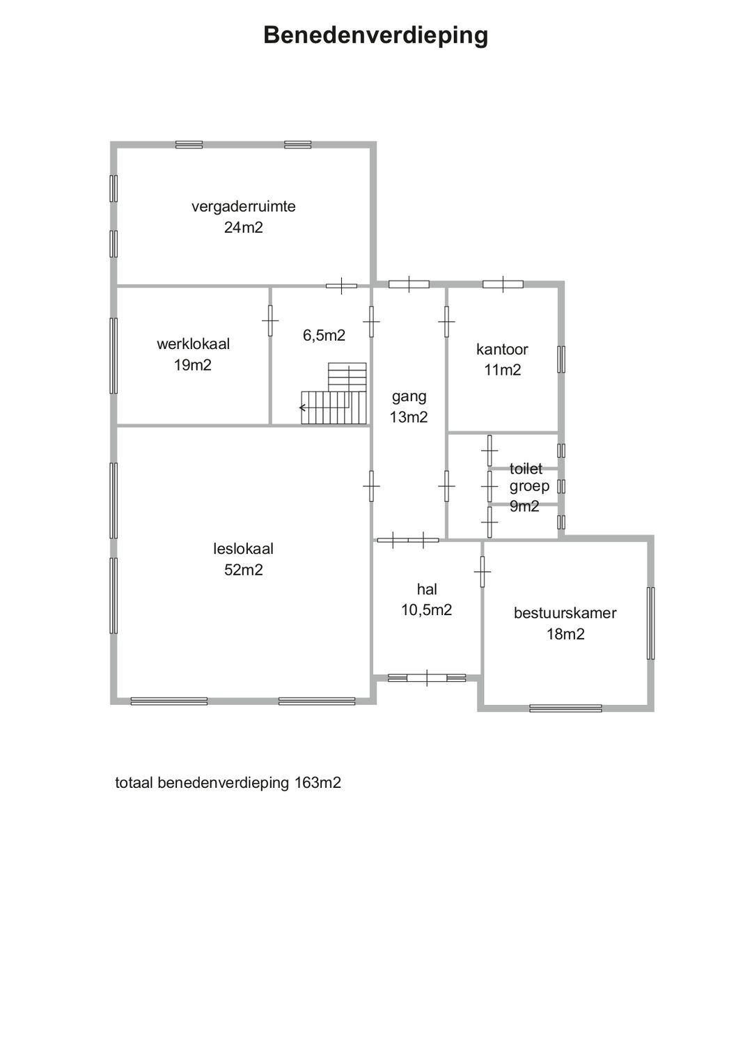 Begane grond: entree, hal, kantoor annex vergaderruimte, kantoorruimte annex kantoortuin, toiletgroep, 2 kantoorvertrekken, en kantoorruimte annex vergaderruimte.