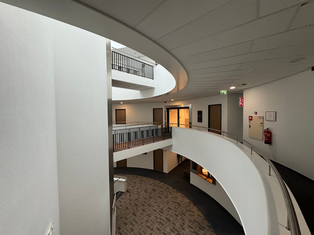 De ruimte is gelegen binnen een bedrijfsverzamelgebouw waar op dit moment ca. 9 andere bedrijven zijn gevestigd (met name tandheelkunde en zakelijke / financiële dienstverlening).