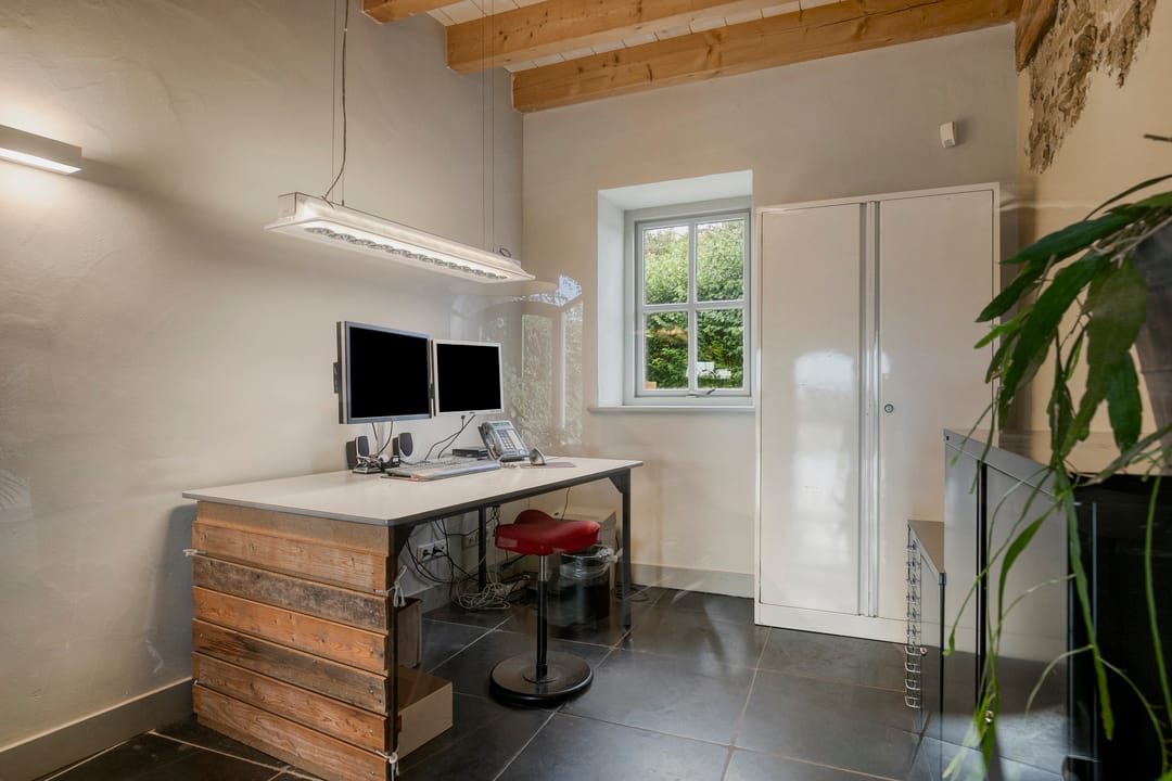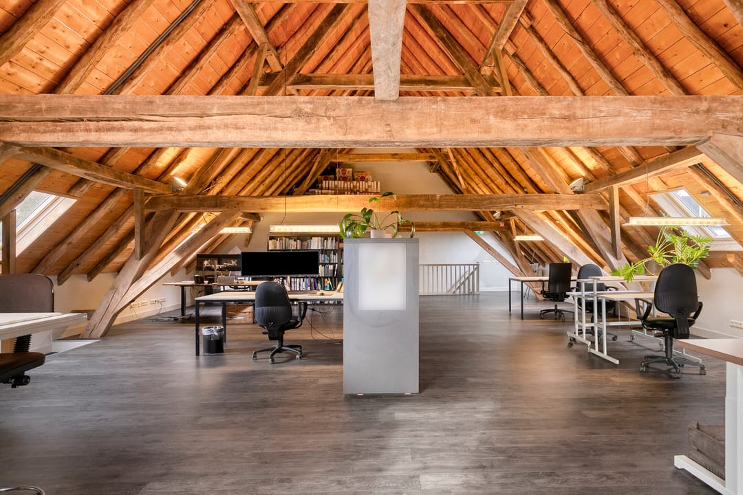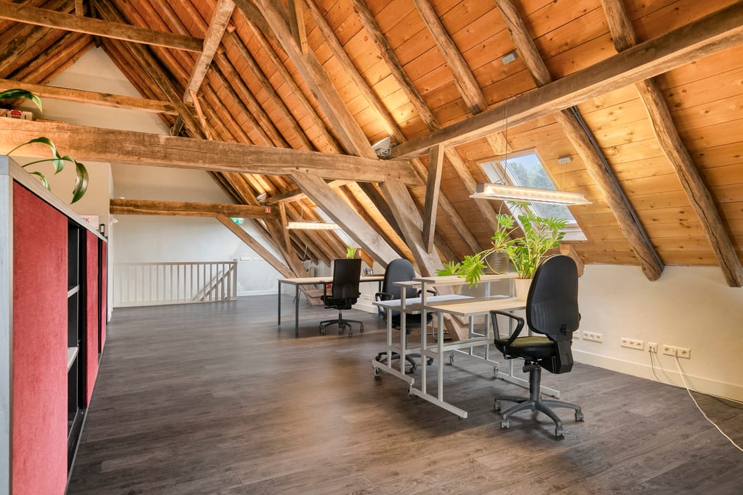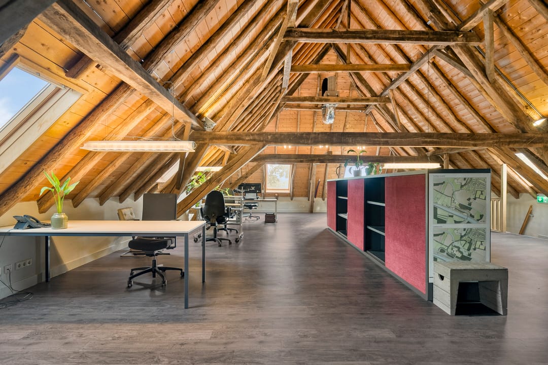 Eerste verdieping: kantoortuin en vergaderruimte.