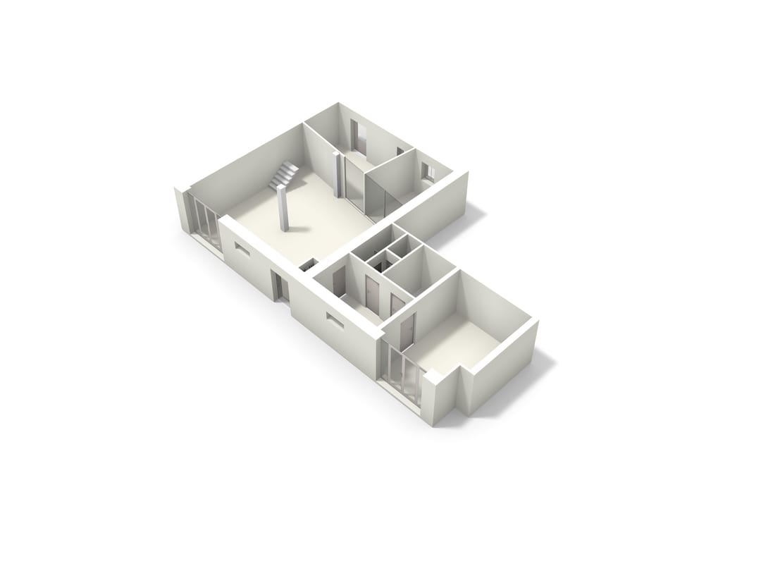 Begane grond: kantoorruimtes, flexplekken, trapopgang, toilet, keuken, douche en reproruimte.