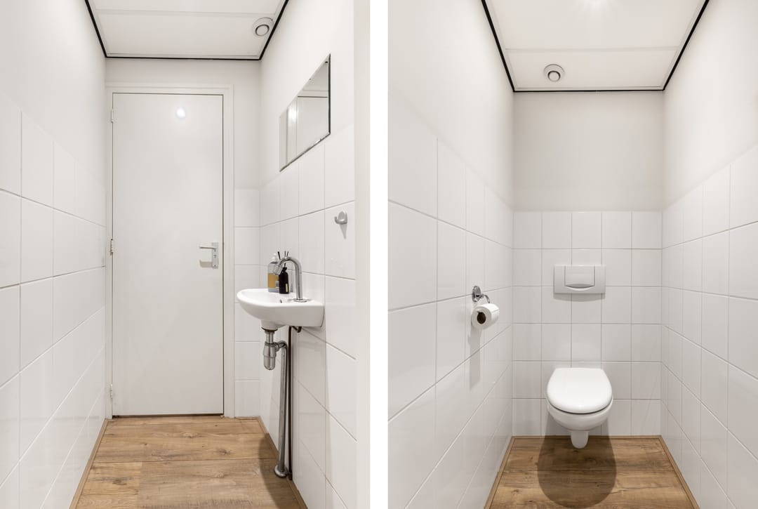 Tapijt en laminaat op de vloeren, de wanden zijn voorzien van kabelgoten, stuukwerk . Het plafond is voorzien van een systeemplafond en lichtinstallatie. Verwarming via centrale verwarming Nefit Topline HR 25 HR 107 uit 2016 (ketel hangt in de bovenwoning). 1 toilet. Uitgebreide meterkast met voldoende groepen en aardlekschakelaars. Er zijn 2 airco's aanwezig. Door de verhuurder zijn zonnepanelen geplaatst waarvan gebruik gemaakt mag worden. Dit in overleg met de verhuurder.