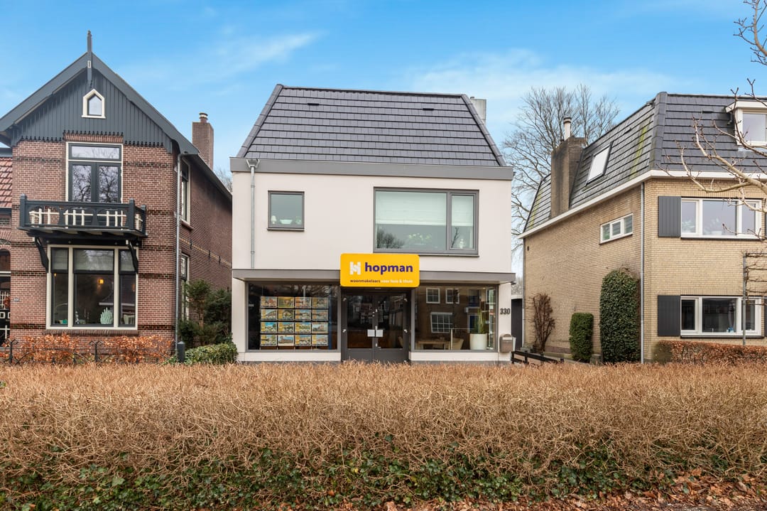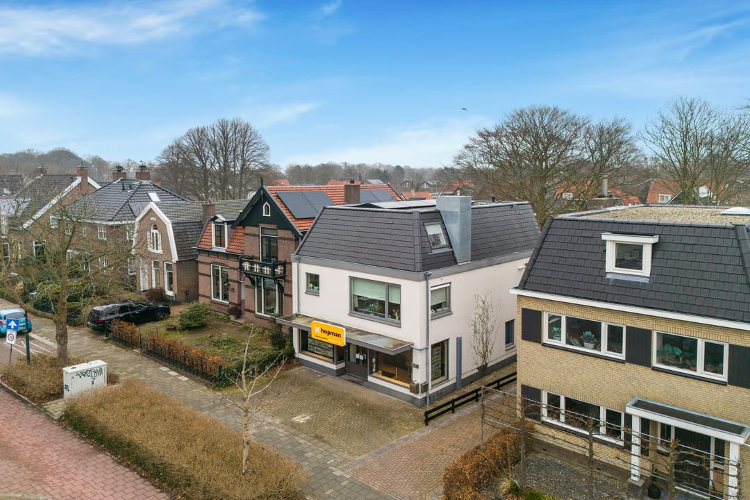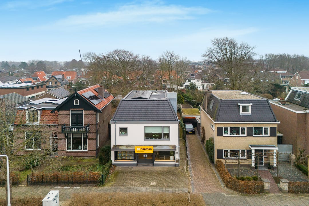 Boven het kantoor is een woning met dakterras en een eigen ingang.