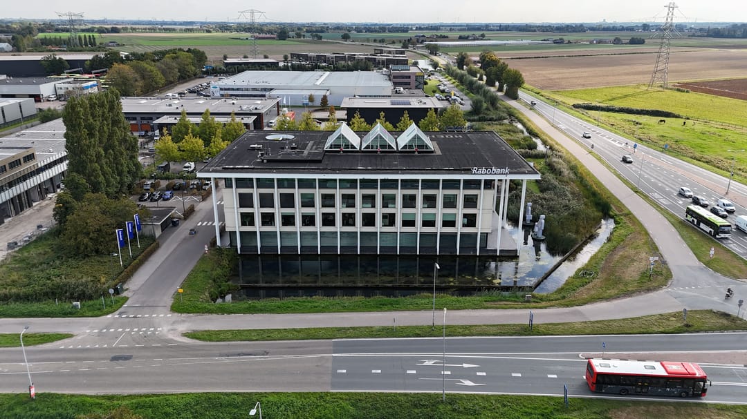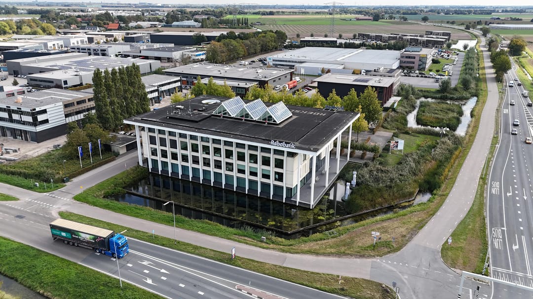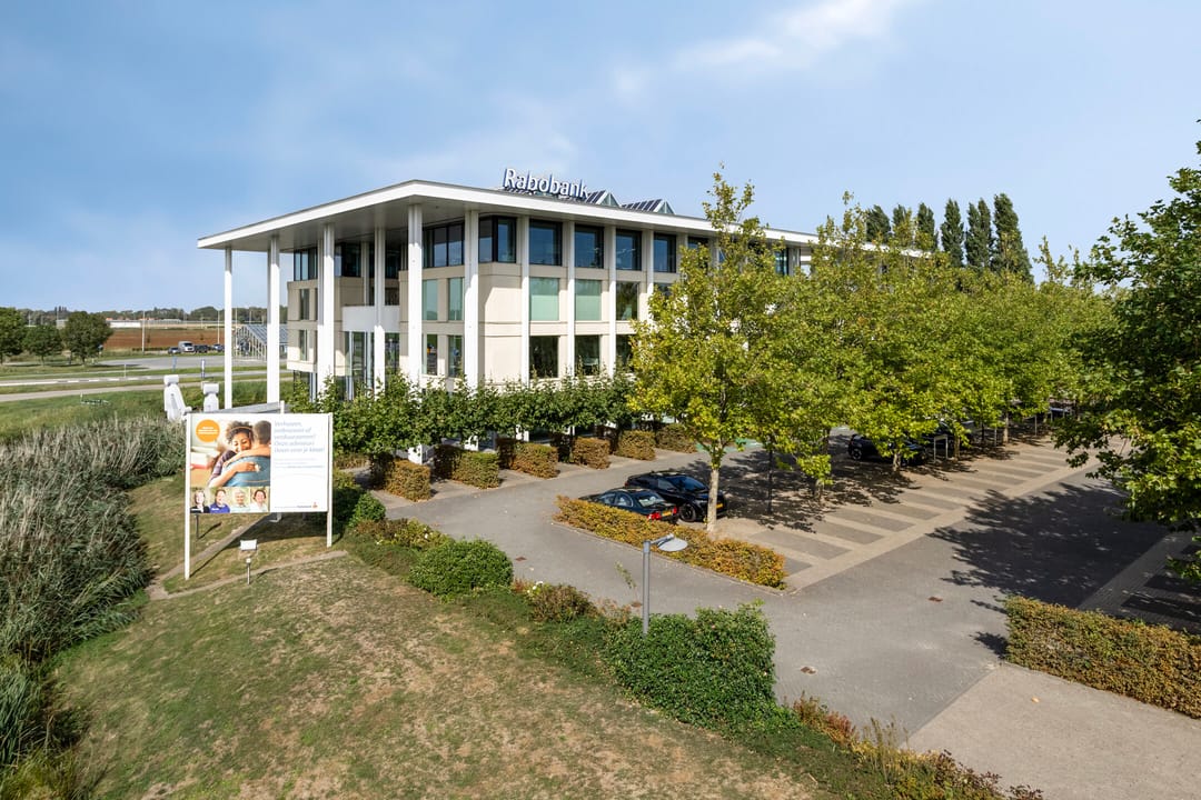 De totale propositie die we namens Rabobank aanbieden, bestaat uit een samenspel van vijf percelen grond en water (vol eigendom), bestaande uit het perceel met het kantoorgebouw én vier percelen onbebouwde grond waarvan er eentje met bebouwingsmogelijkheden.