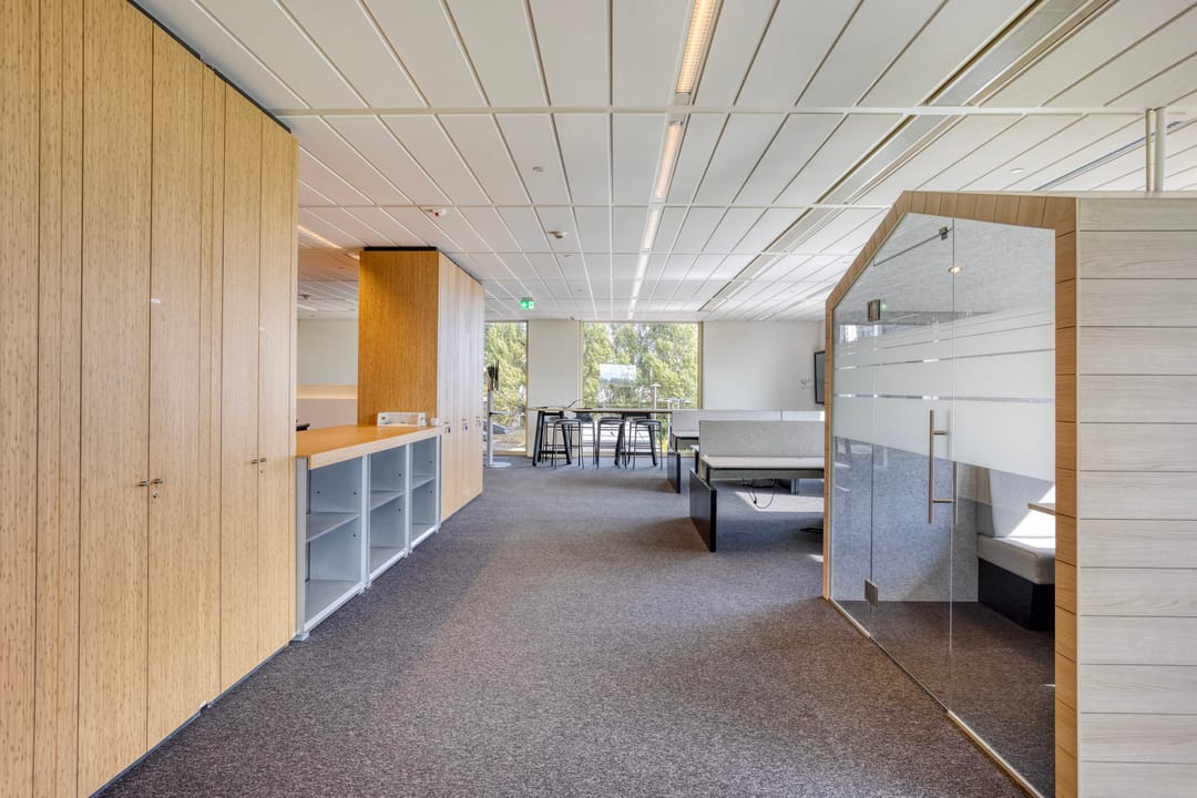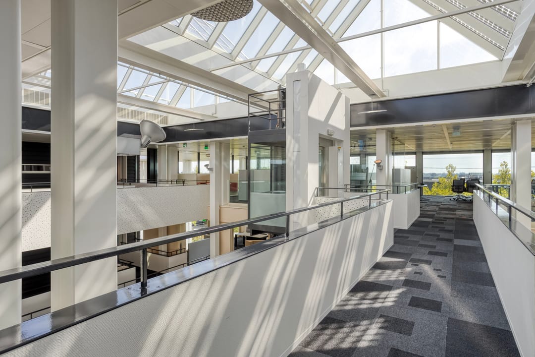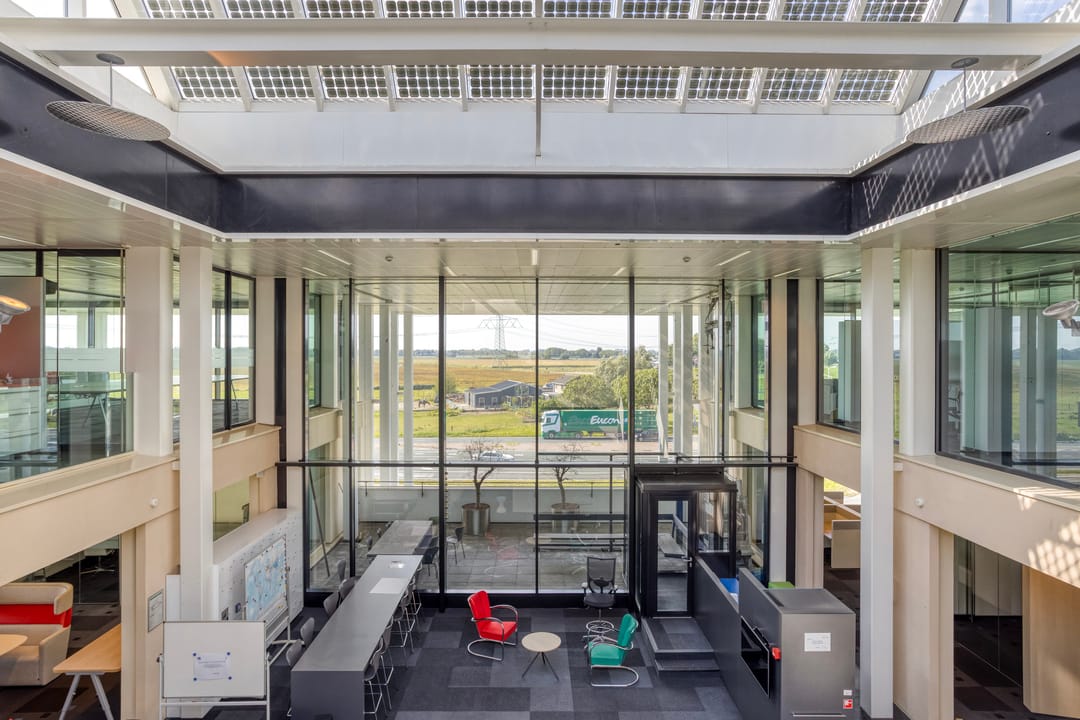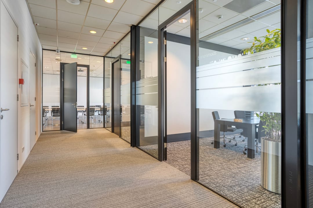 - Afwisselend scheidingswanden van glas, deels dicht;
