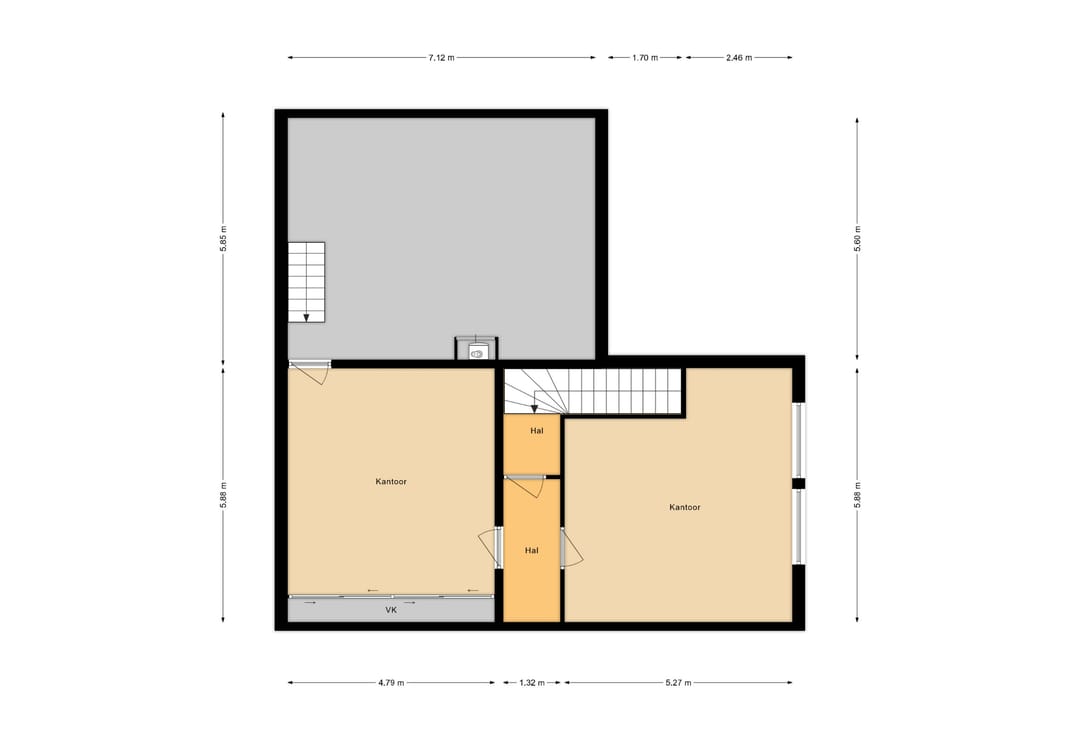 Dankzij de combinatie van afgesloten kantoren, open ruimtes en de vide biedt het pand veel flexibiliteit in gebruik. De nette afwerking en de royale raampartijen zorgen voor een prettige, lichte werkomgeving.