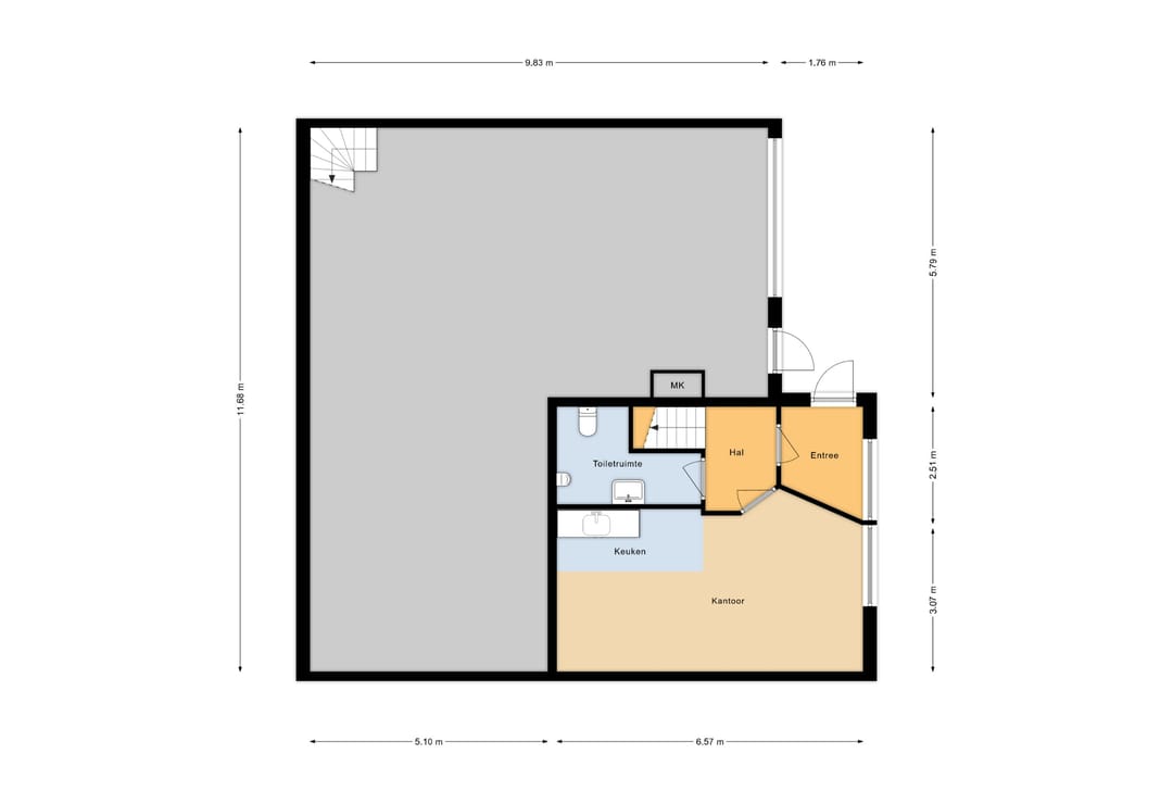 Op de begane grond heeft een oppervlakte van ongeveer 126 m2 perfect geschikt voor productie, opslag of andere bedrijfsactiviteiten.