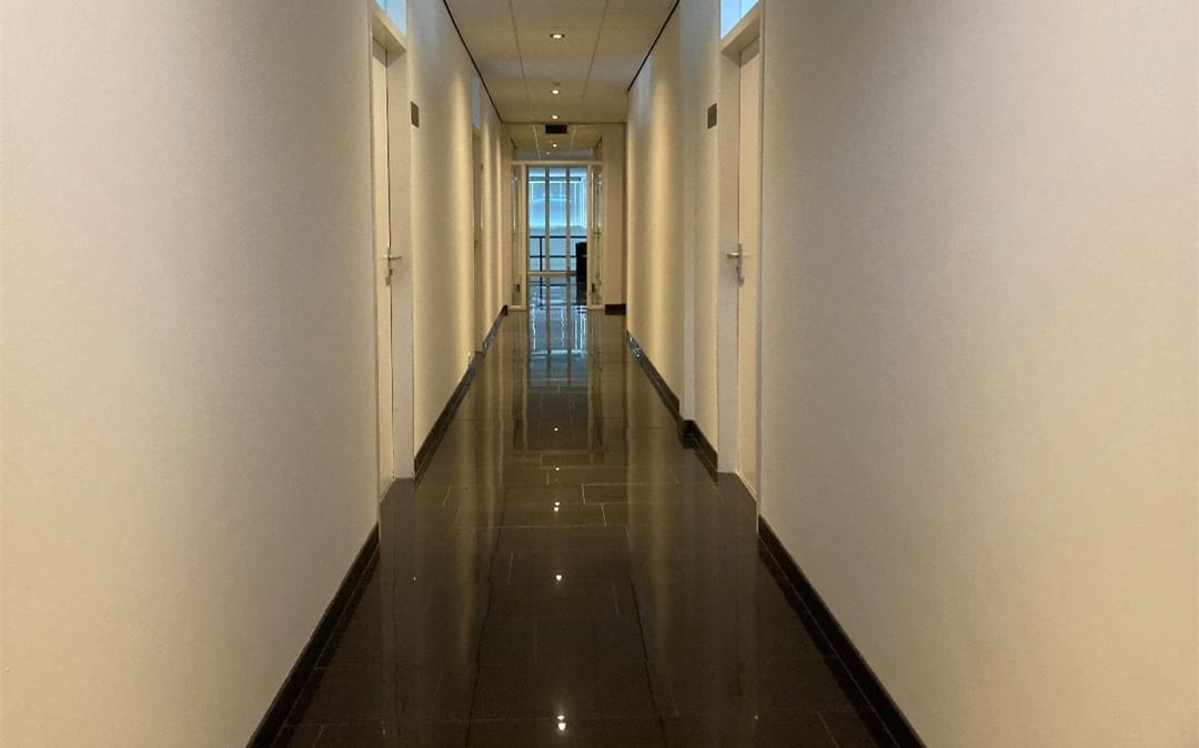 De kantoorruimte beschikt over een compleet en net opleverniveau met o.a. vloerafwerking, gesausde wanden, systeemplafond met verlichtingsarmaturen, ruime daglichttoetreding door de raampartijen in zowel de voor- als zijgevel, verwarming, airco en databekabeling (cat. 6). In de algemene ruimte bevinden zich de gemeenschappelijke pantry en toiletgroepen.