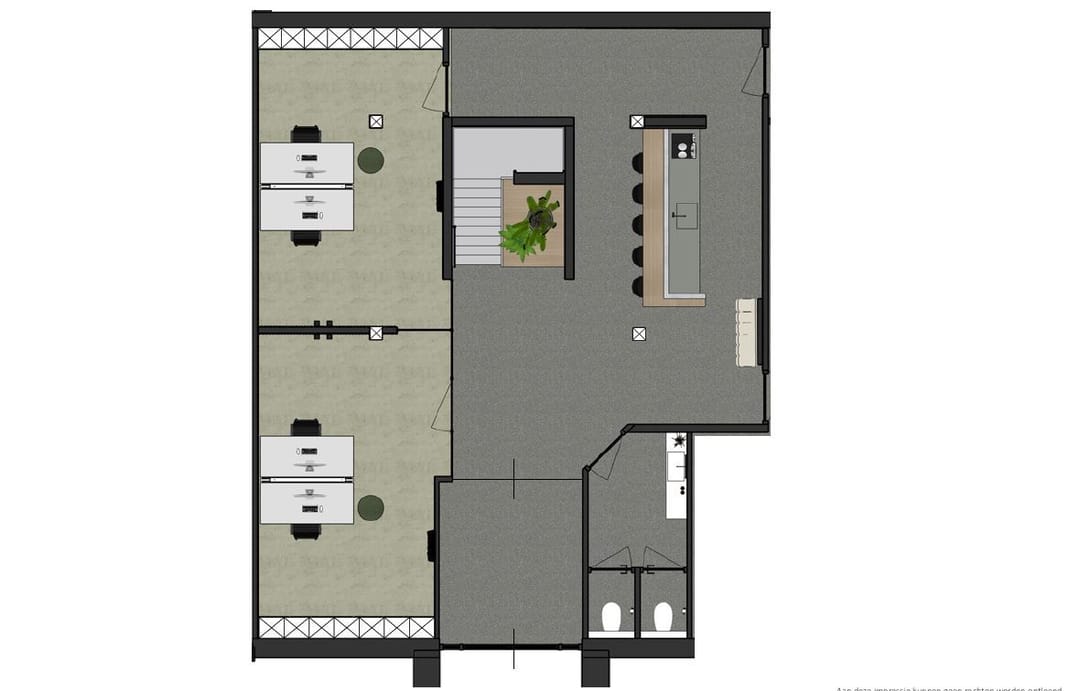 - ca. 400 m² kantoorruimtes (K 1.9 - K 1.10 en K 1.11) op de eerste verdieping - huurprijs op aanvraag.