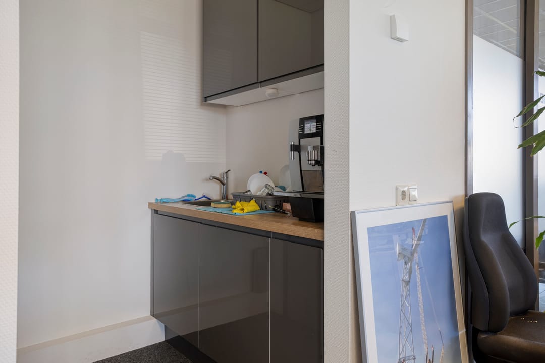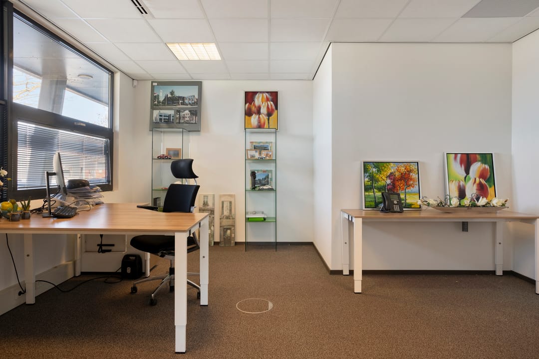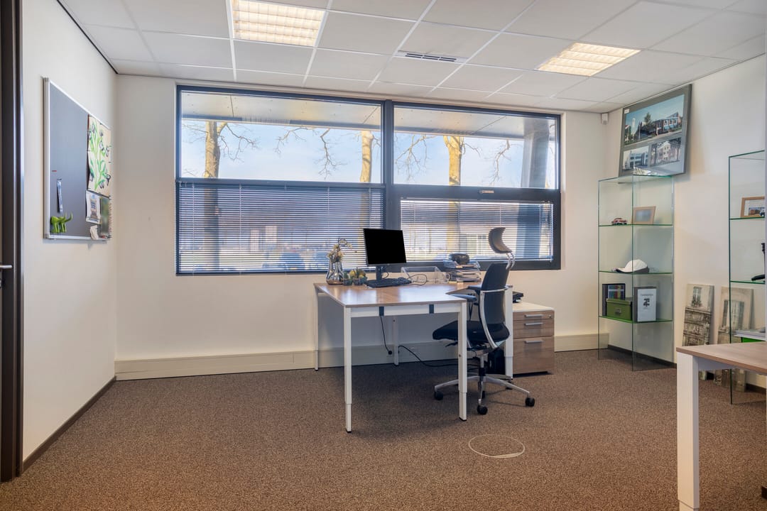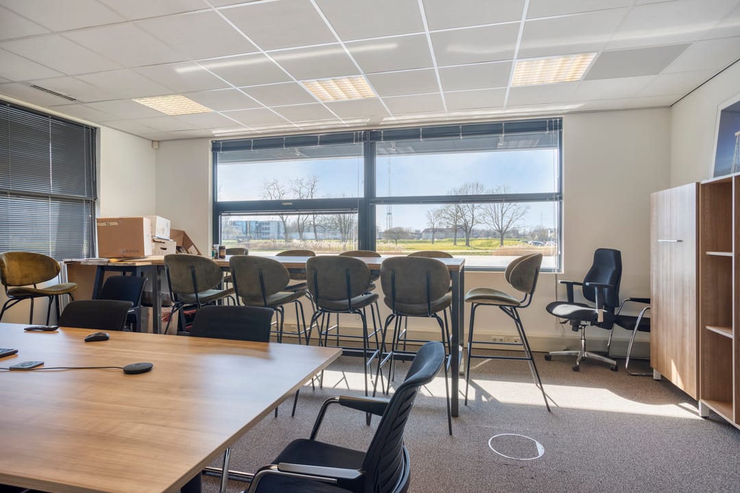 De kantoorruimte is gelegen op de begane grond en omvat een totale oppervlakte van circa 228 m², met verhuurmogelijkheden vanaf circa 110 m². De ruimte is efficiënt ingedeeld en beschikt over vijf ruime kantoorvertrekken, een pantry en eigen sanitaire voorzieningen.