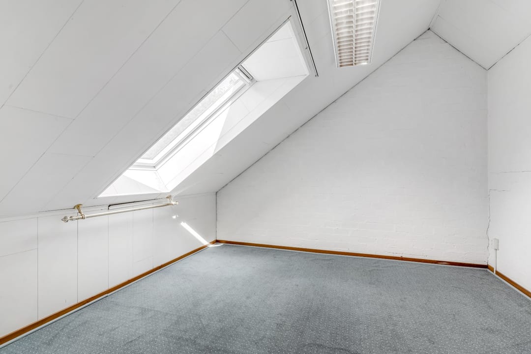 Toegankelijk middels vaste trap. Een slaapkamer/kantoorruimte.