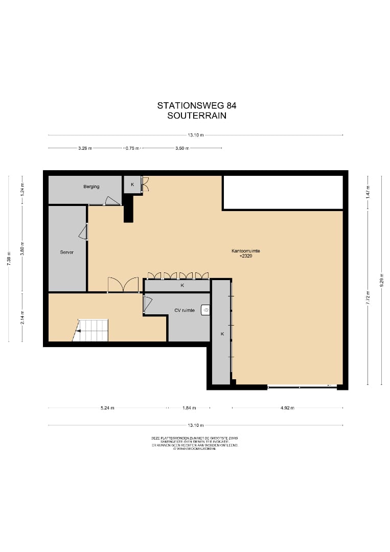 Kantoorruimte/ archief, opbergruimte, CV-ruimte.
