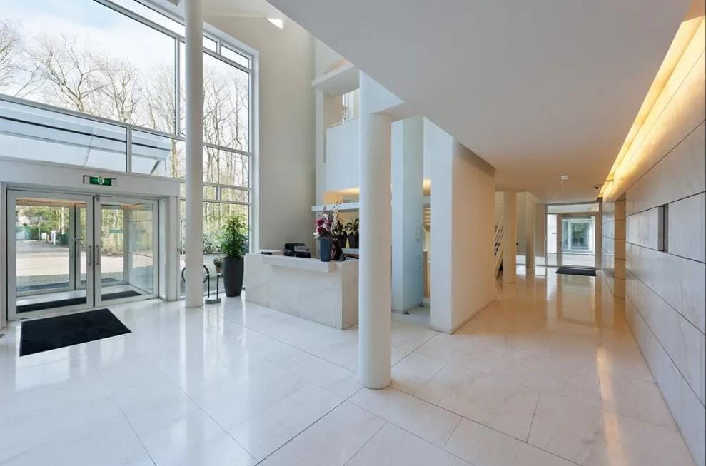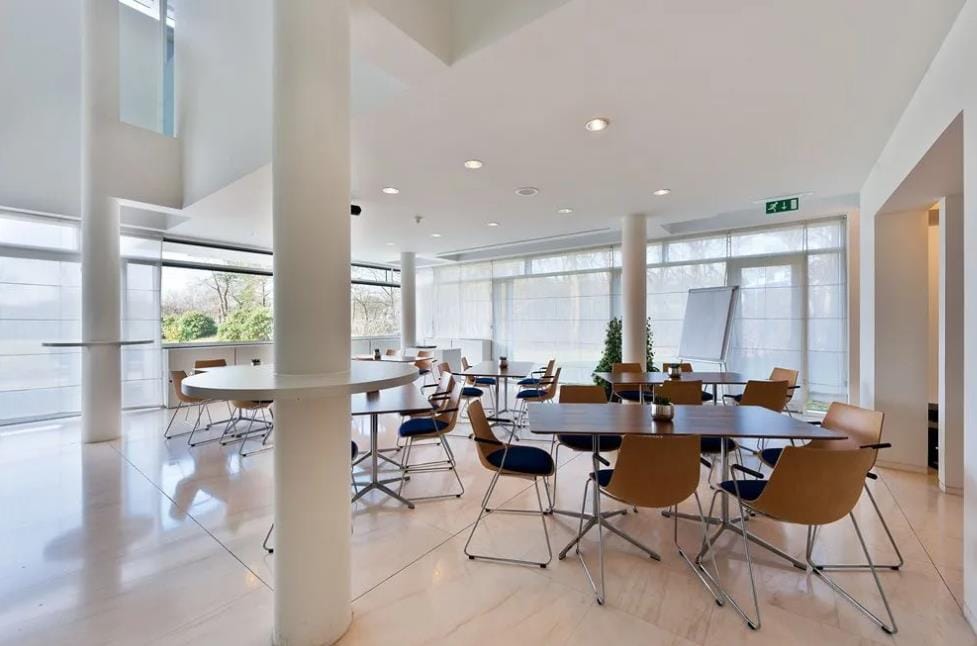 Het gebouw beslaat circa 3.610 m², verdeeld over vier verdiepingen, met vloervelden tot 1.375 m² per verdieping. De begane grond is uitgerust met een stijlvolle receptie, diverse vergaderruimtes en een bedrijfsrestaurant. Dat maakt dit object uitermate geschikt voor één gebruiker die behoefte heeft aan flexibele indelingsmogelijkheden en hoogwaardige voorzieningen.