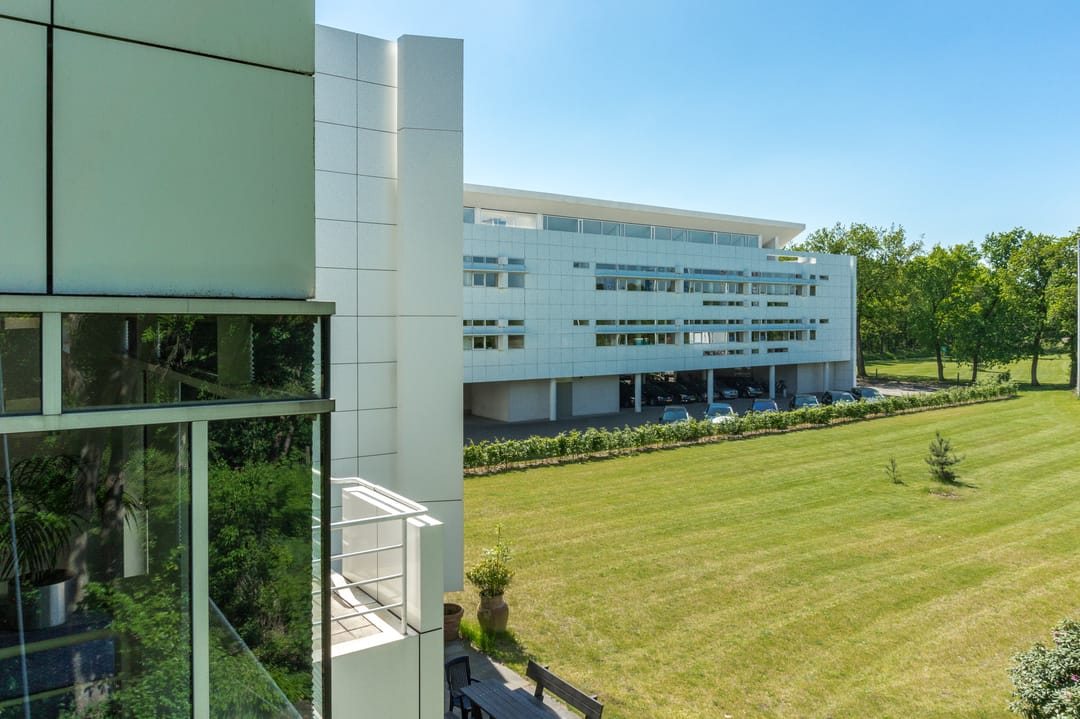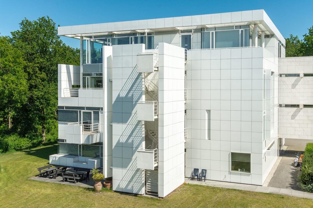 Modern en Iconisch Kantoor in Hilversum Bonairelaan 4 in Hilversum is een iconisch kantoorgebouw, ontworpen door de gerenommeerde architect Richard Meier. (O.a. Getty Center LA, High Museum of Art Barcelona, Charlo Towers Mexico City en Stadhuis Den Haag). Dit opvallende, glanzend witte gebouw bestaat uit twee aparte delen die op indrukwekkende wijze zijn verbonden door een fly-over die zich uitstrekt over twee verdiepingen. Gelegen op een strategische locatie tussen de A27 en de charmante villawijk, biedt Bonairelaan 4 niet alleen een uitstekende bereikbaarheid, maar ook een inspirerende werkomgeving.