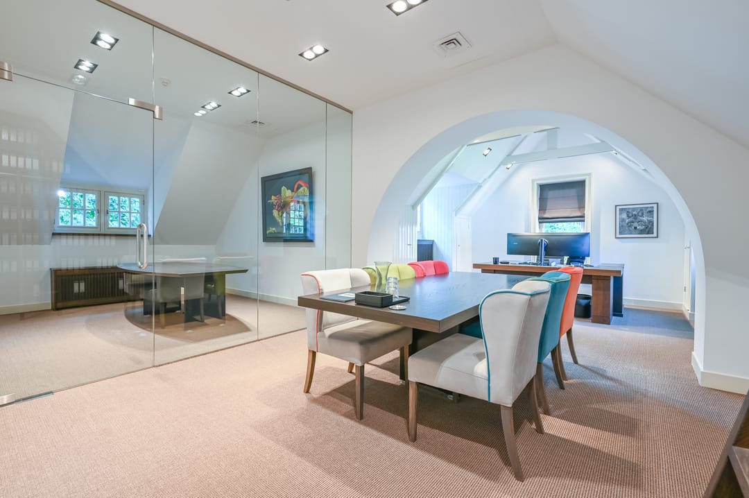 * Groot vloeroppervlakte, meerdere royale werkruimtes die met elkaar in verbinding staan door ensuite deuren en glazen wanden. Liever een andere indeling? Met lkleine ingrepen eenvoudig aan te passen.