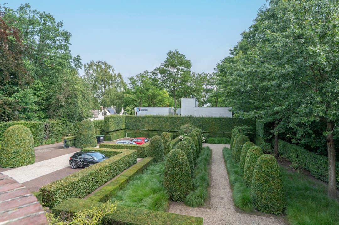 * De tuin is strak en zeer verzorgd en onderhoudsvriendelijk aangelegd, met begroeiing, nette grindpaden, beuken- en buxushagen.