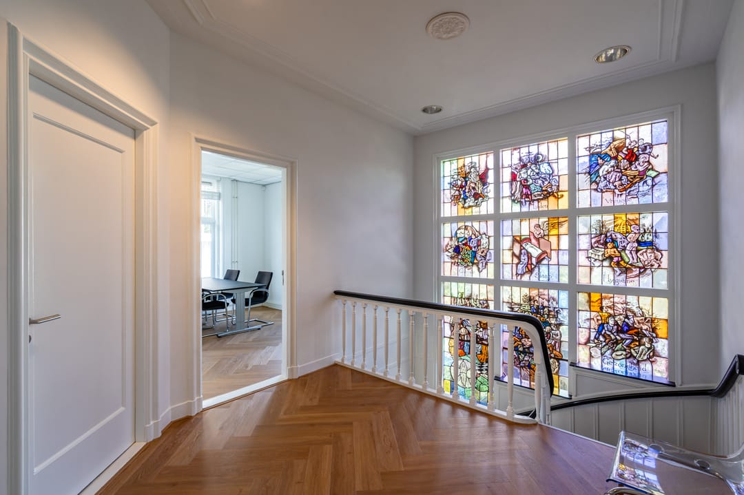 Kantoorvilla "Avenue" ademt historie, klasse en elegantie. Authentieke stijlkenmerken zoals imposante glas-in-loodramen, houten lambrisering, rijk geprofileerde kozijnen en een monumentale entree geven het pand een unieke identiteit. Deze combinatie van historische details en representatieve uitstraling maakt het object bij uitstek geschikt voor ondernemingen die waarde hechten aan karakter, zichtbaarheid en een hoogwaardige werkomgeving.