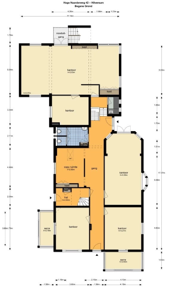 De zelfstandige kantoorruimte heeft een verhuurbaar vloeroppervlak van totaal 340 m².