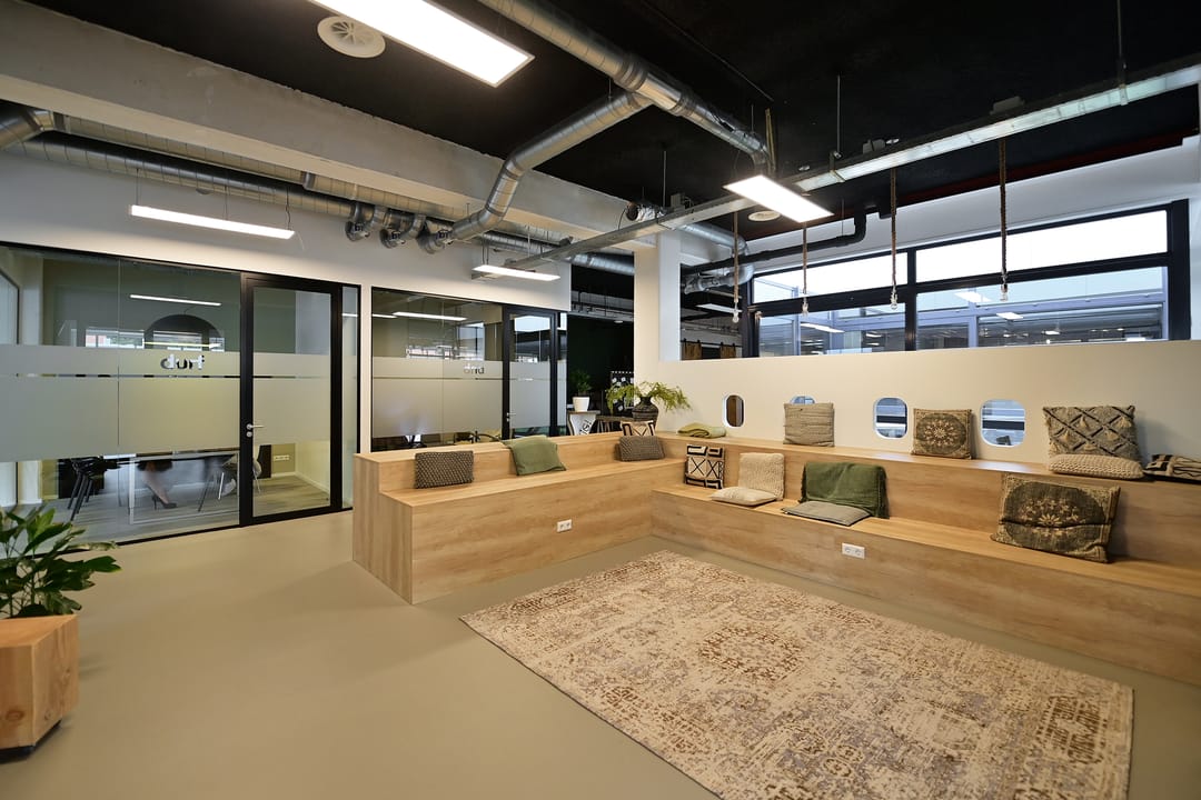 - Mechanical ventilation, peak cooling, built-in fittings, elevators, windows can be opened, cable ducts, modular ceiling, toilet, pantry, heating and room layout