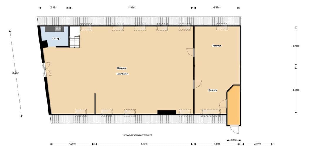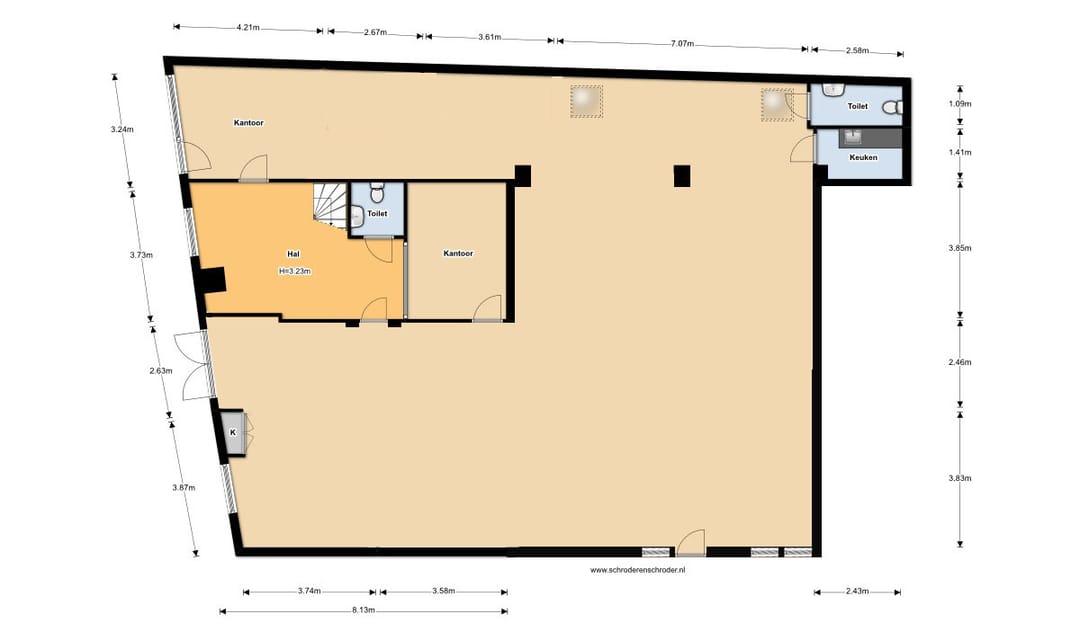 Kantoorruimte met pantry en toilet