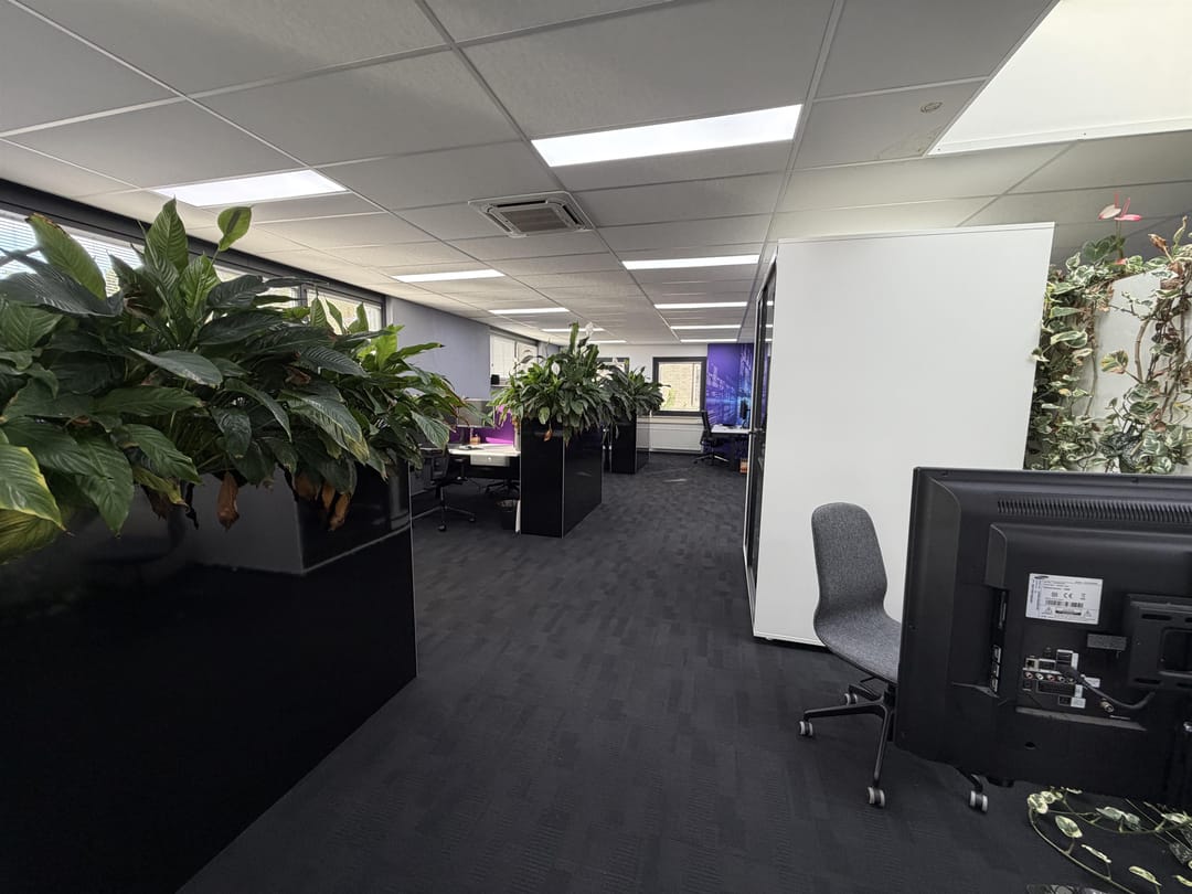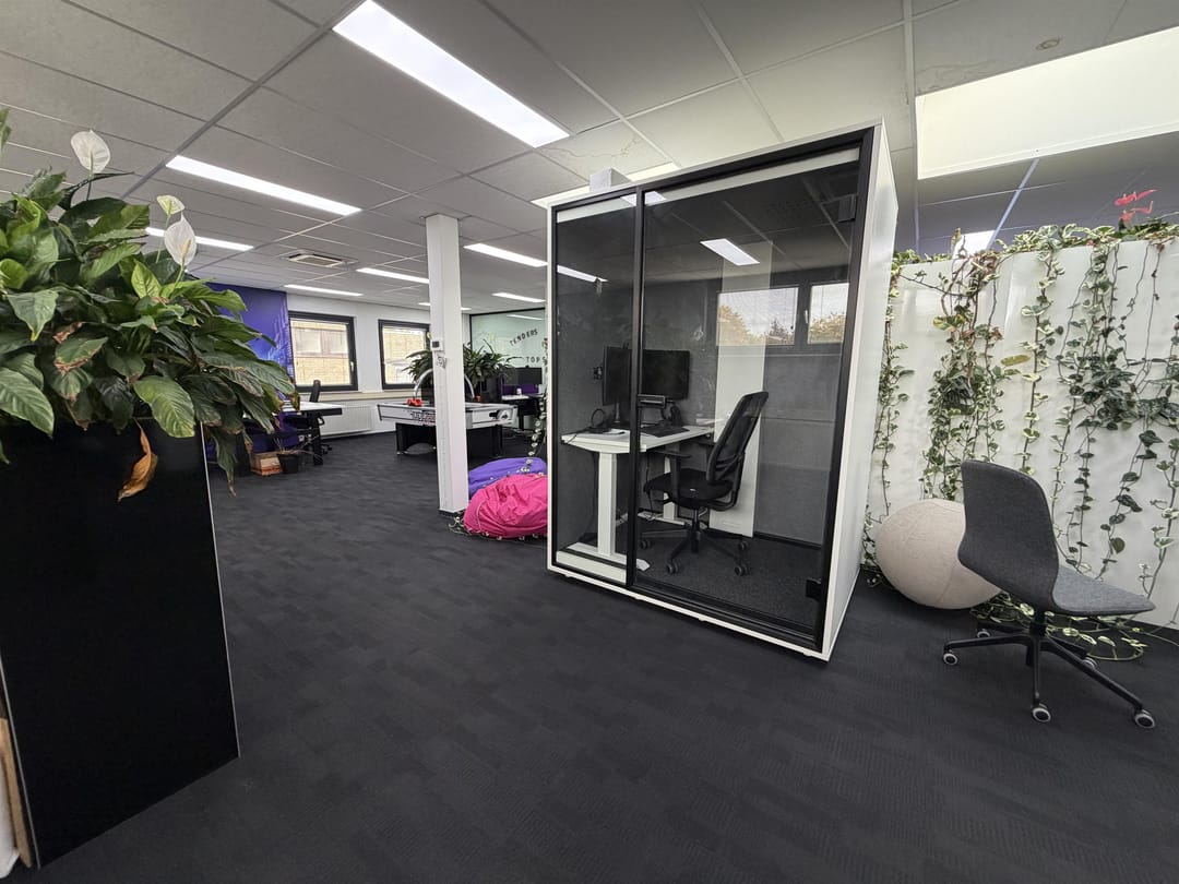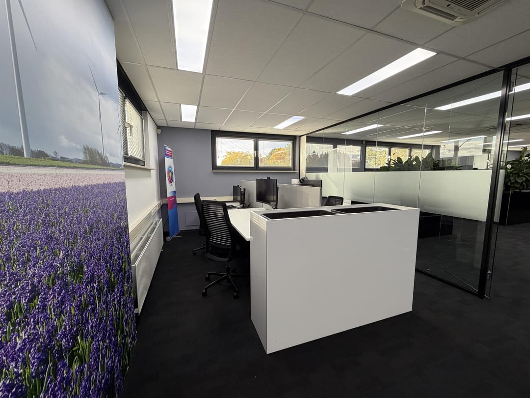 De kantoorruimte is keurig afgewerkt en voorzien van onder andere een systeemplafond met LED-verlichting, vloerbedekking en airconditioning. De grote raampartijen zorgen voor veel daglicht en een prettige werkomgeving. Op het eigen terrein is ruim voldoende parkeergelegenheid aanwezig voor zowel medewerkers als bezoekers.