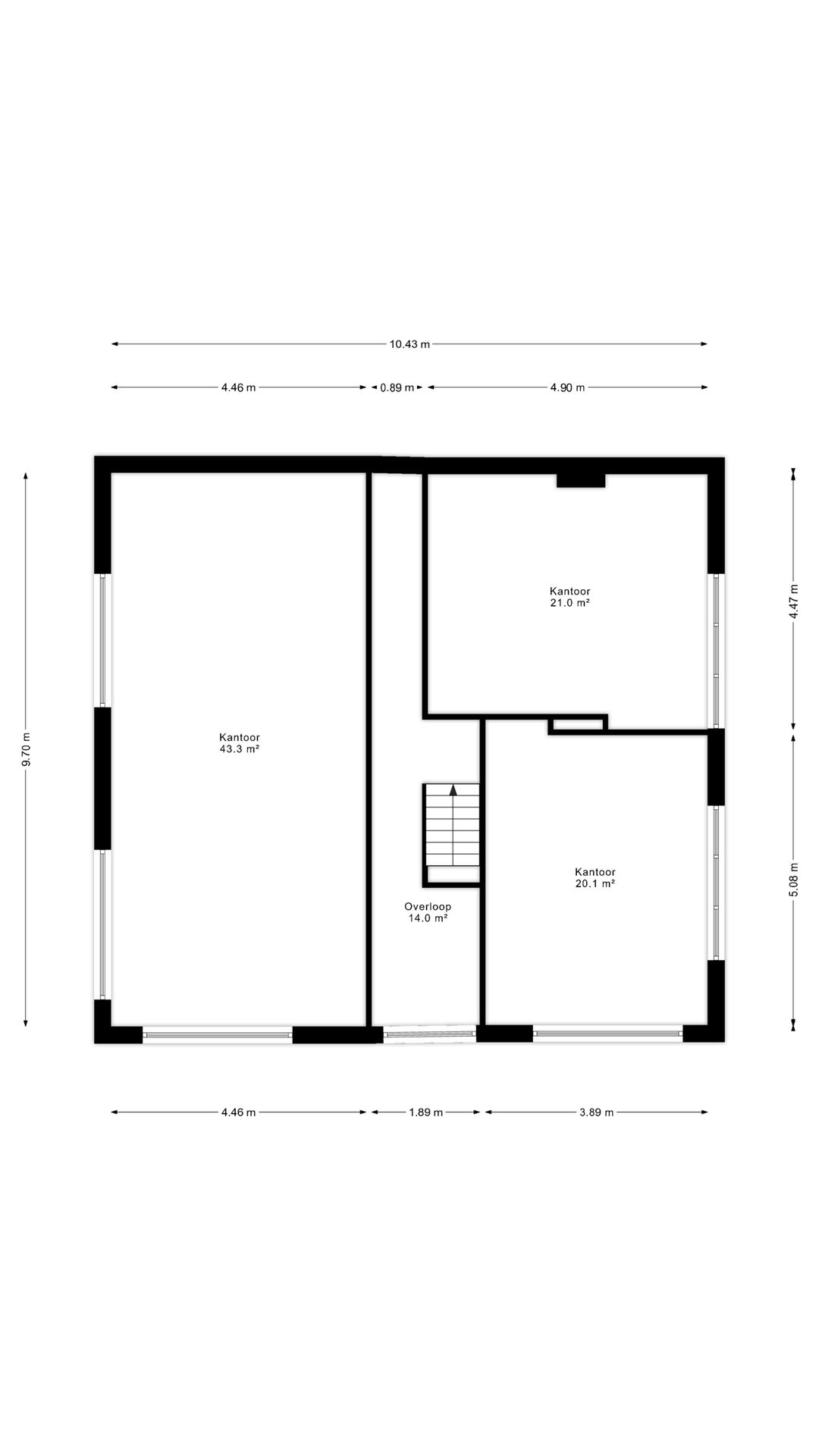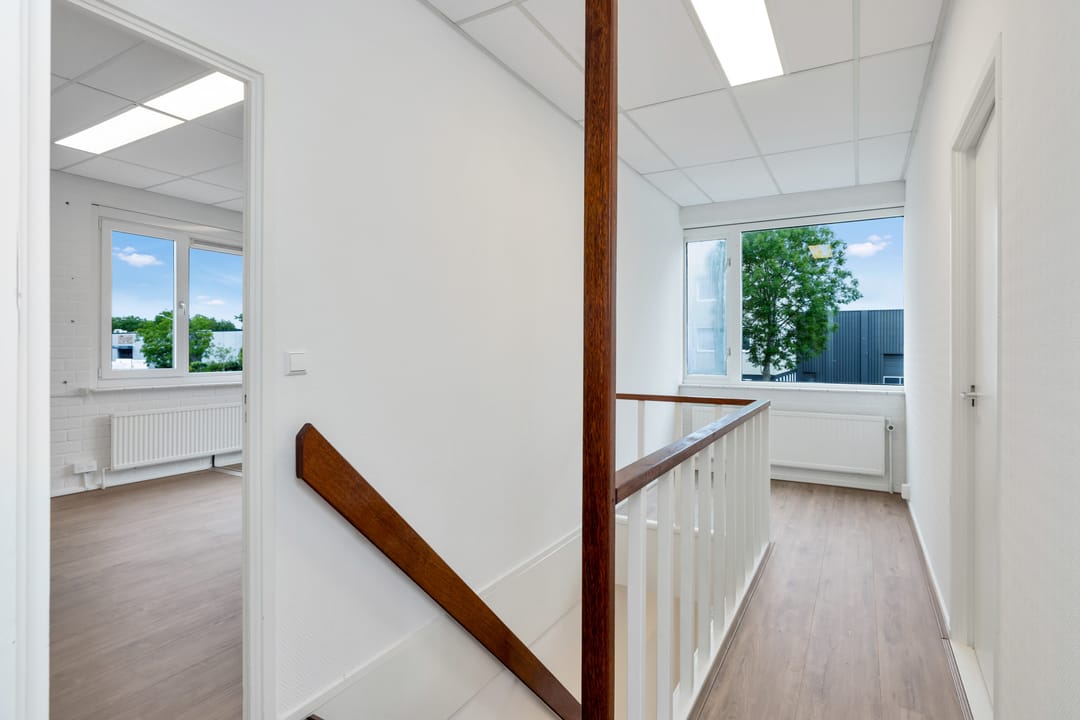 With a central front entrance, the property consists of various office rooms located on the ground floor and first floor. This (growth) office location of approximately 198 m² GFA (Gross Floor Area) and approximately 189 m² LFA (Leasable Floor Area) is very conveniently located. Separate parking spaces on private premises are available for rent.