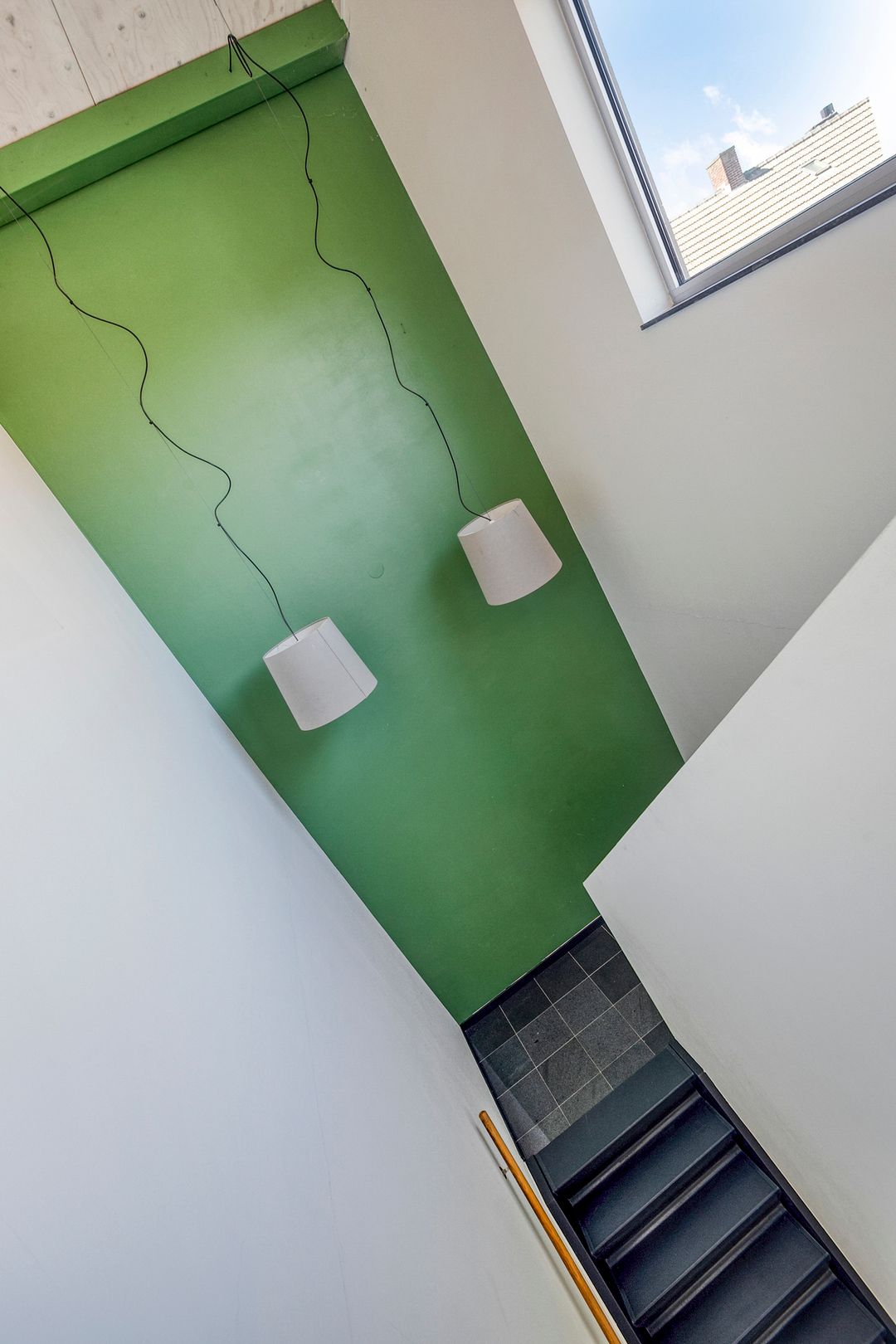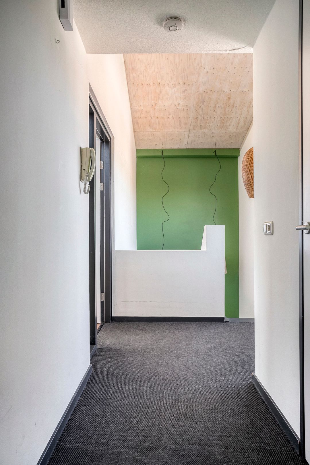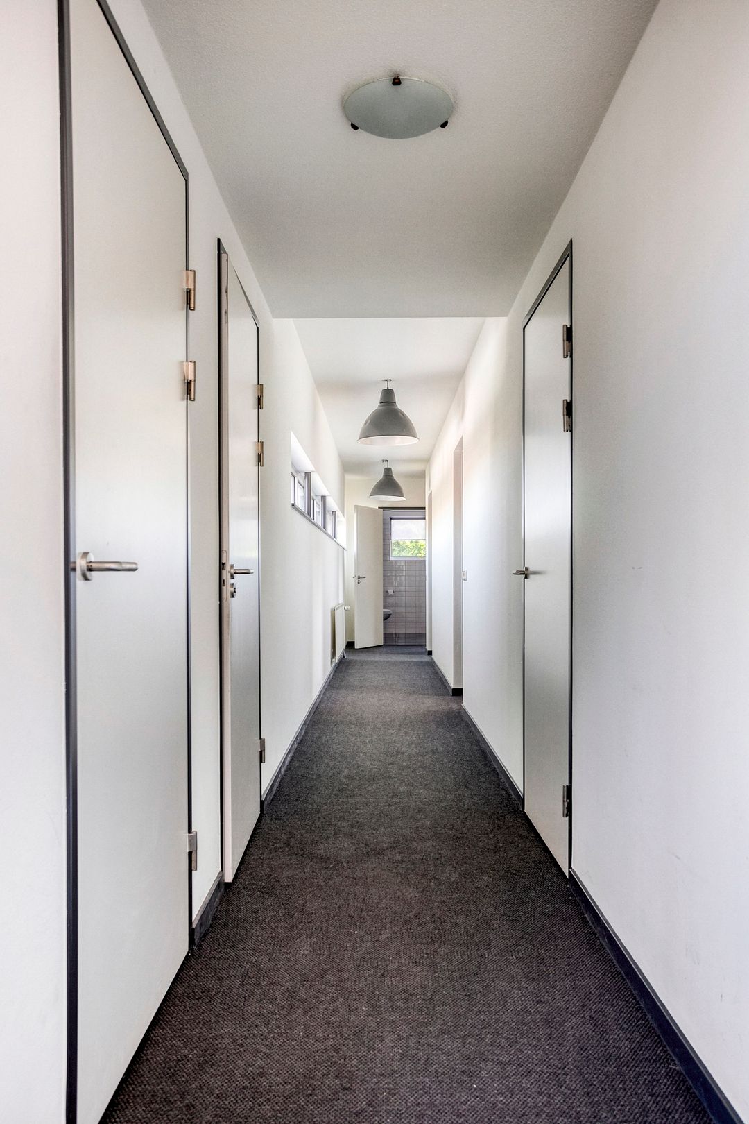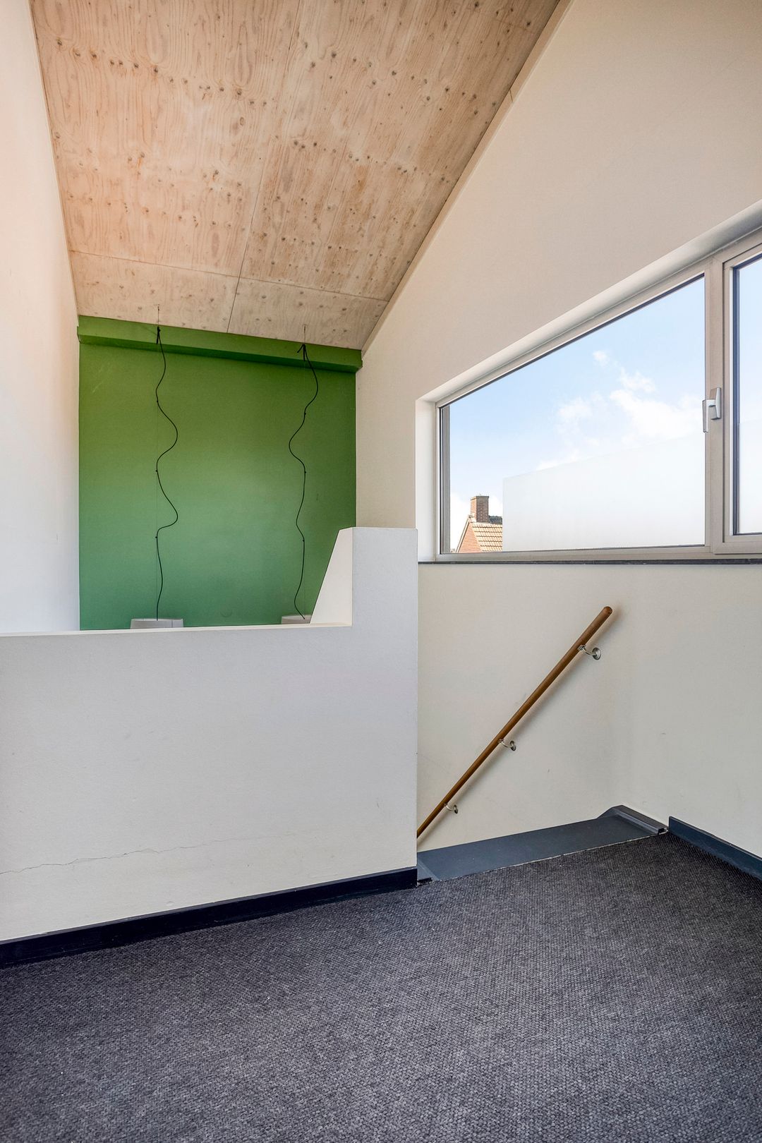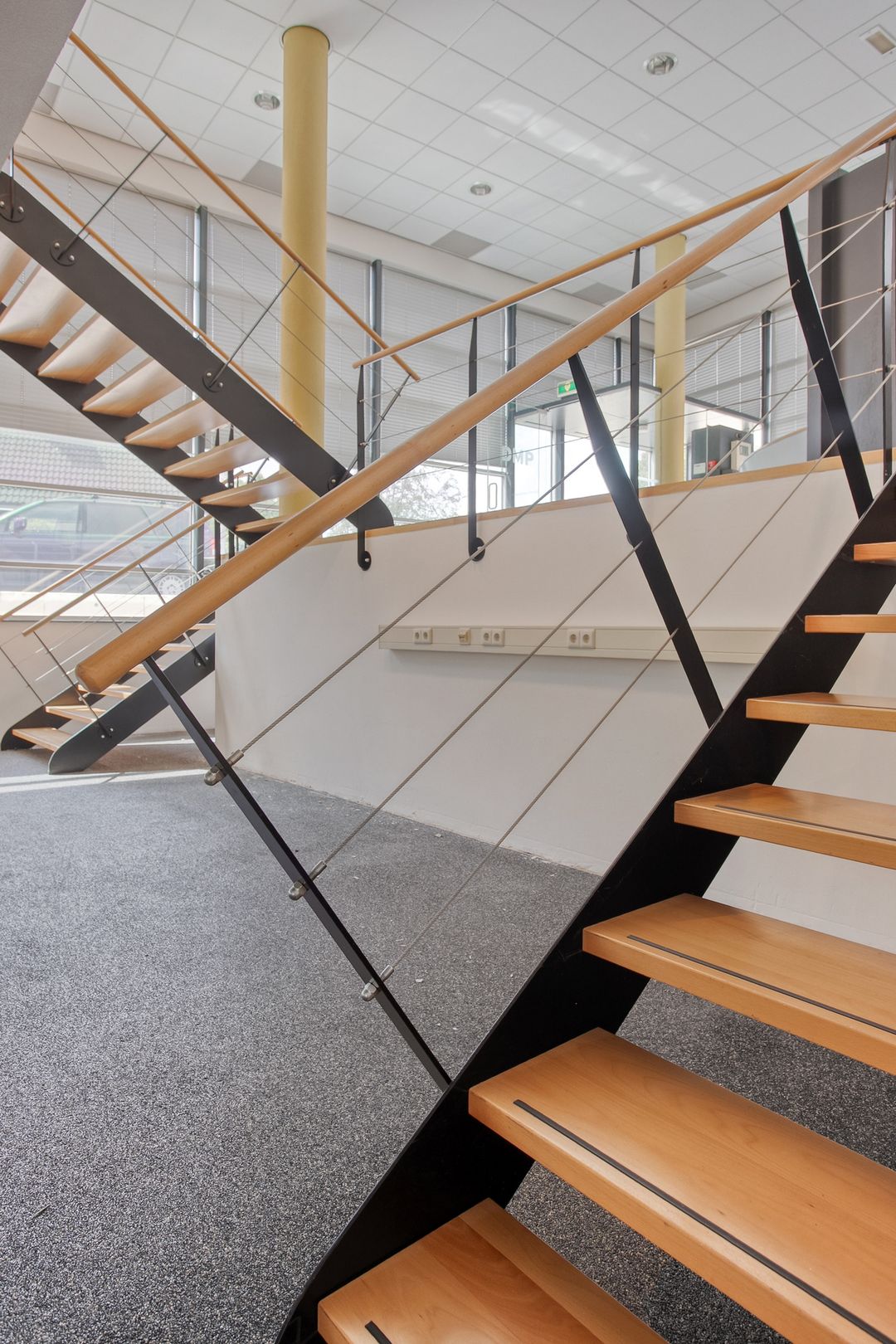 1e verdieping: zes royale kantoor-/spreekkamers, sanitaire voorzieningen en een fraaie vide/gang met zicht op de onderliggende kantoortuin. De grote raampartijen zorgen voor veel daglicht en geven het pand een open, moderne uitstraling.