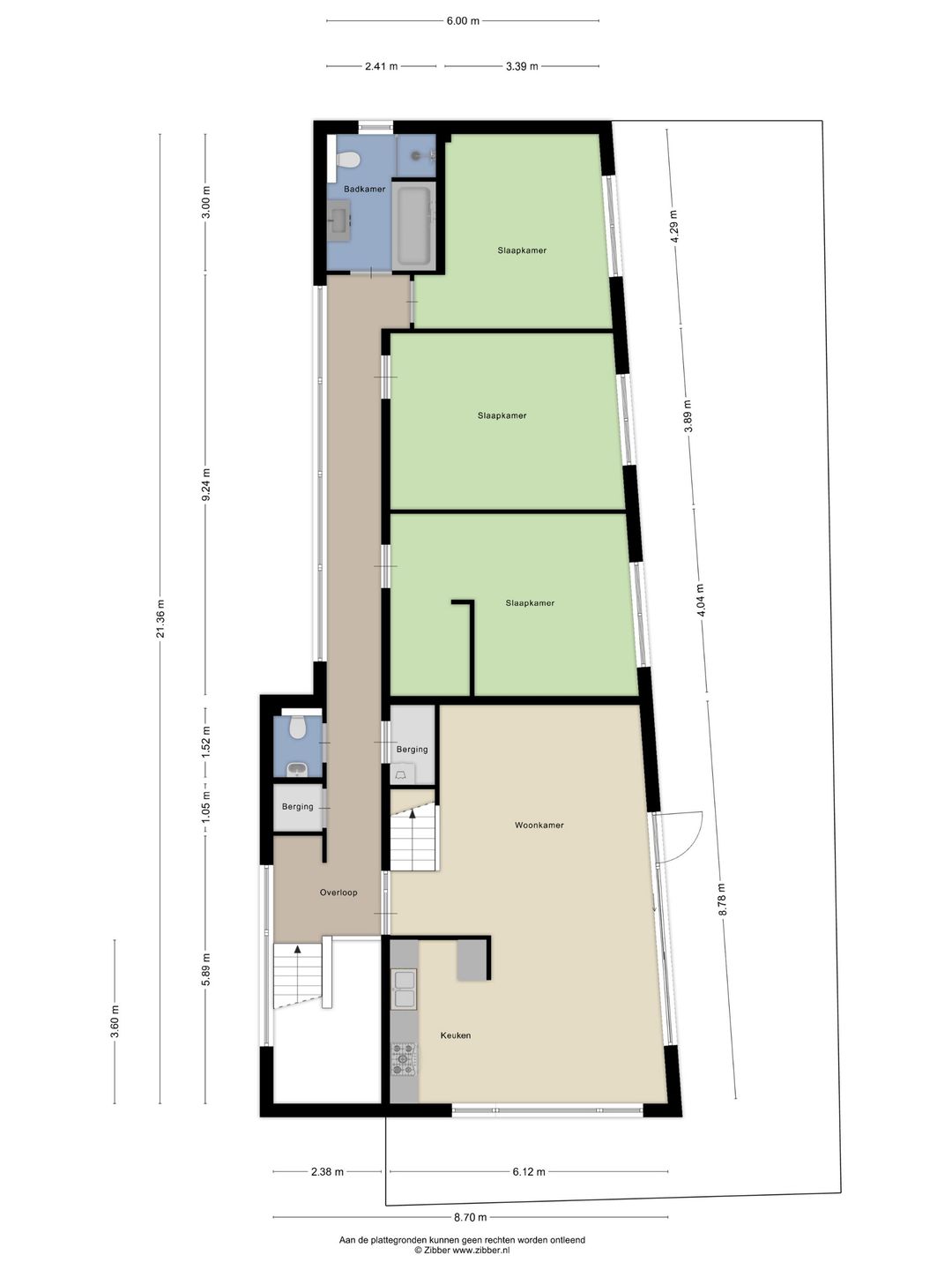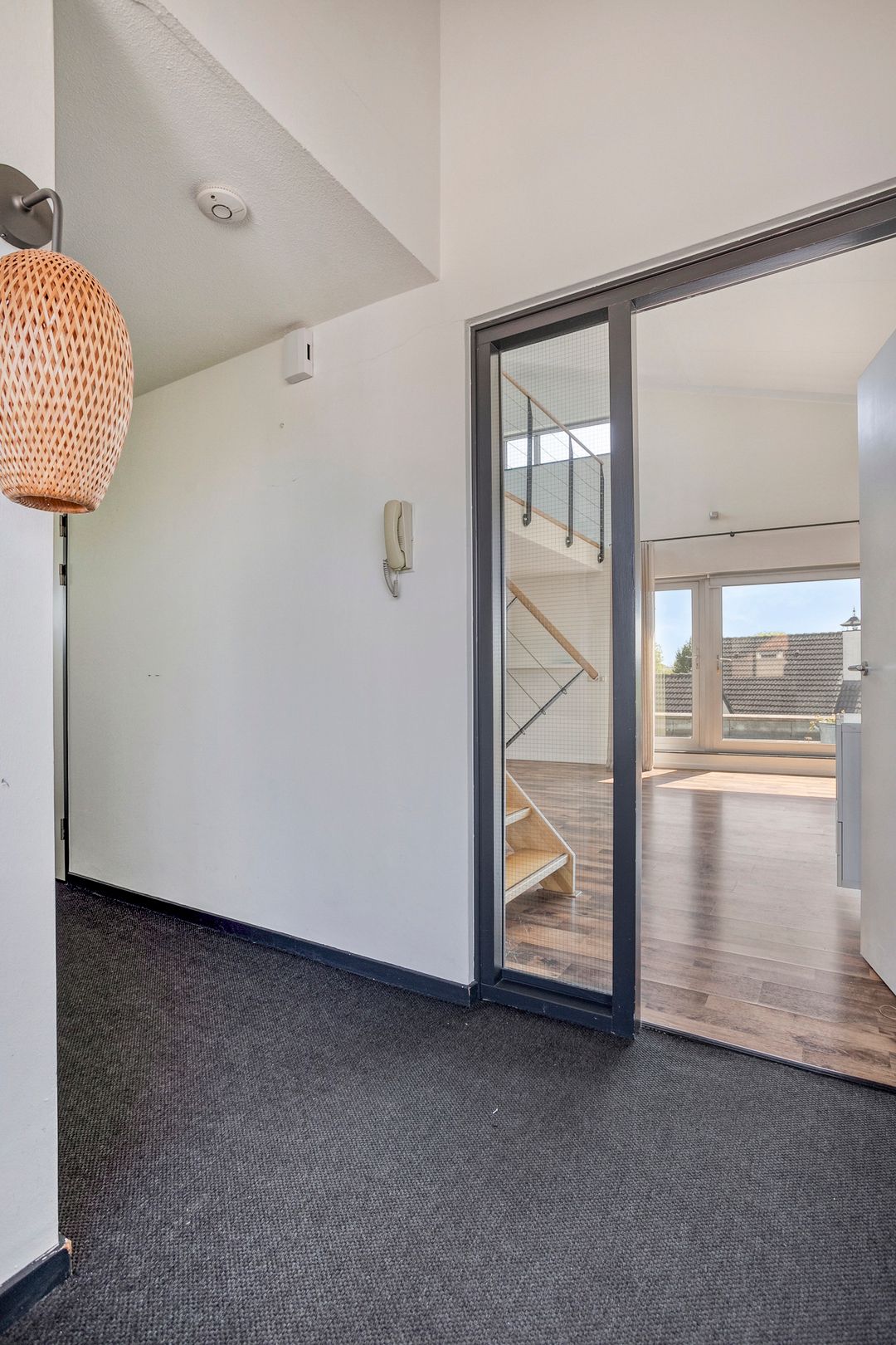 Begane grond: entree/hal met trapopgang, aparte berging (o.a. fietsen, containers) en eigen oprit/parkeerplaats. 2e verdieping: royale woonkamer met hoge plafonds en vide, open keuken in hoekopstelling, groot dakterras, drie zeer ruime slaapkamers, complete badkamer, aparte toiletruimte, muurkast en berging met witgoedaansluitingen. 3e verdieping: vide (ideaal als werk-/hobby-/gastenruimte) en een technische ruimte met cv-installatie. Het vele glas, de hoge plafonds en de vide zorgen voor een fantastisch ruimtelijk gevoel en een prettige lichtinval.