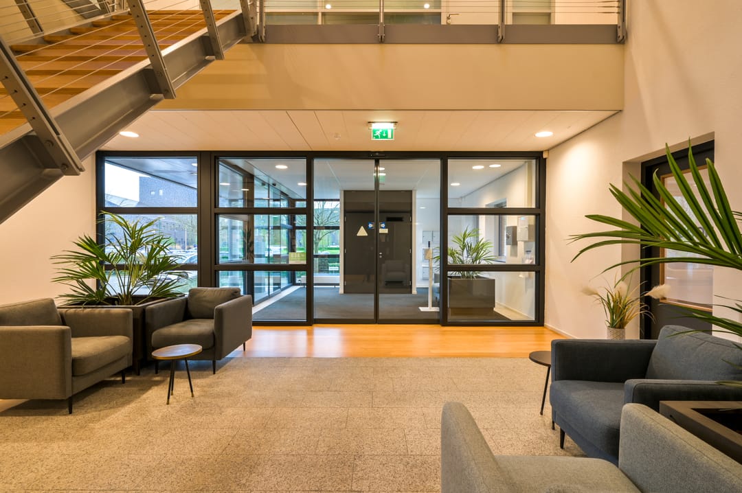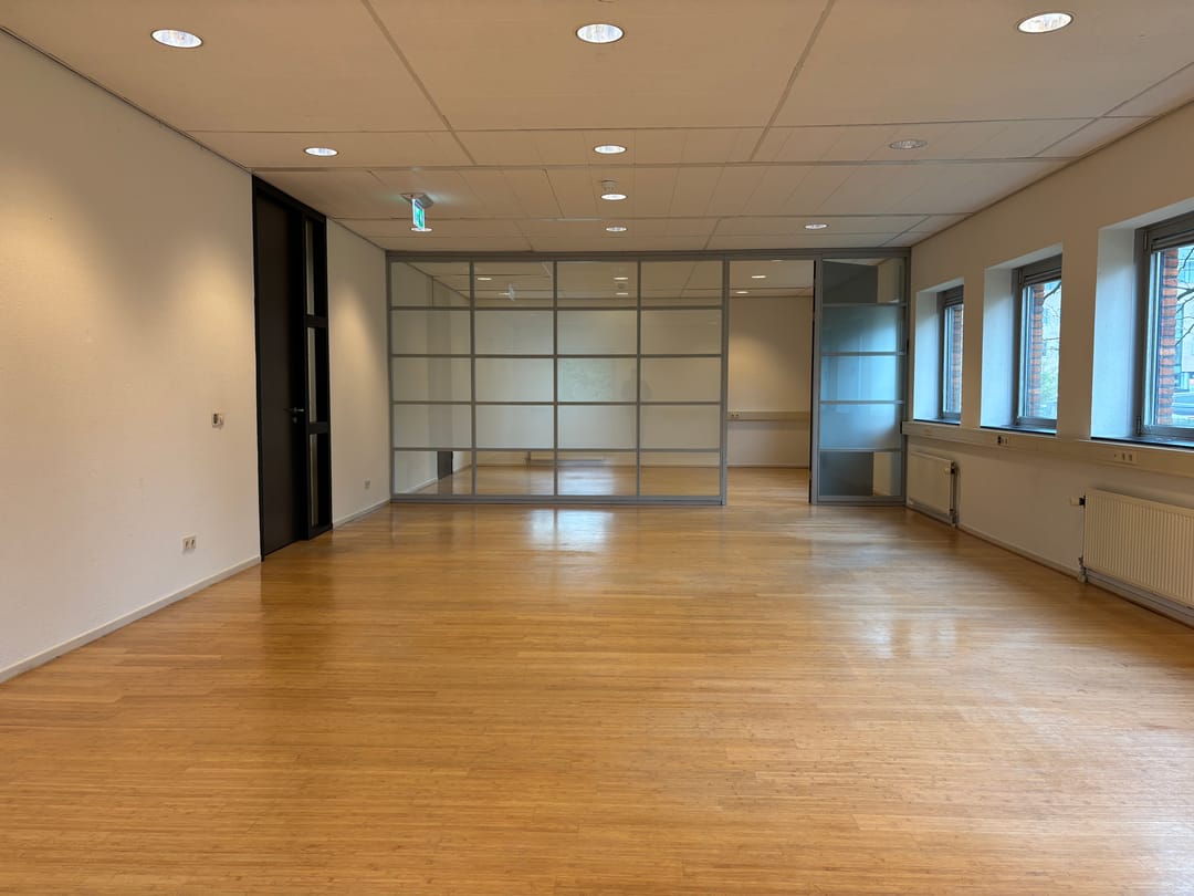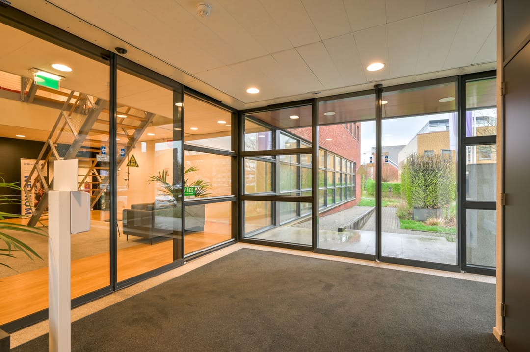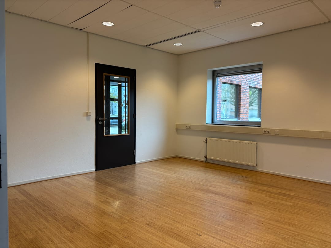 Het betreft een nette kantoorruimte gelegen op de begane grond van een modern kantoorgebouw. Het gebouw beschikt over een ruime entree waar een huiselijke sfeer hangt. De begane grond heeft de beschikking over een toiletgroep en op de 2e verdieping is een ruime keuken met kantine aanwezig. De diverse installaties zorgen voor een prettige werkomgeving.