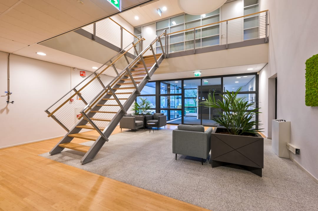 - Mechanical ventilation, peak cooling, built-in fittings, elevators, windows can be opened, cable ducts, modular ceiling, toilet, pantry, heating and room layout