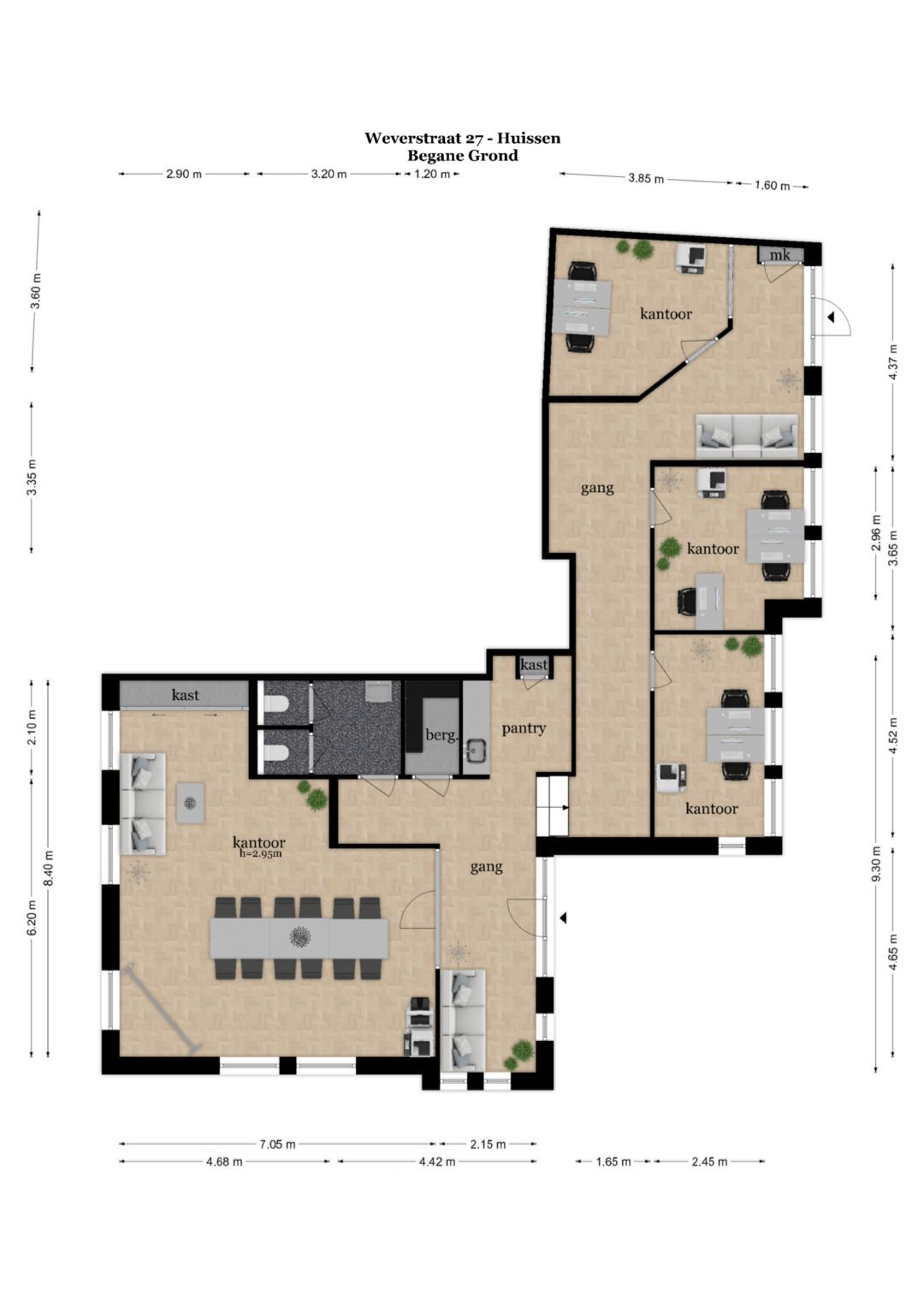 Het kantoor bevindt zich op loopafstand van winkels, horeca en diverse openbare voorzieningen in Huissen. Met de Pleyroute om de hoek en snelle aansluitingen op de A12, N325 en A325, is deze locatie ideaal voor zowel klanten als medewerkers. Bovendien is er ruime parkeergelegenheid direct voor de deur en een bushalte op loopafstand, een groot pluspunt in Huissen.