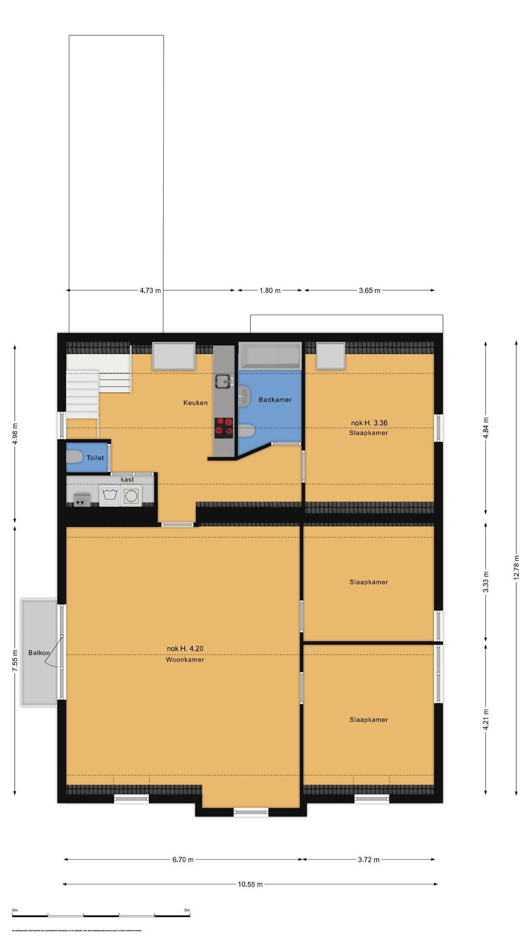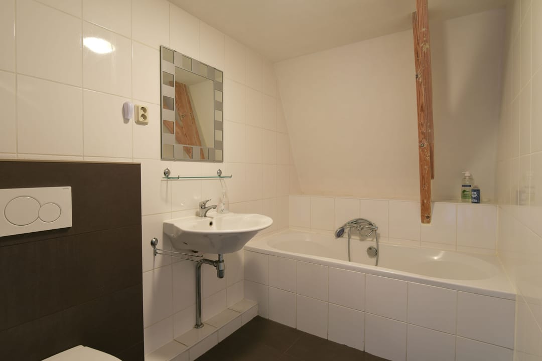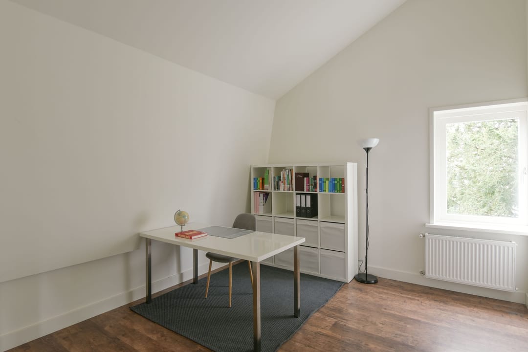 De bovenverdieping beschikt over een licht en ruim 4-kamerappartement van circa 125 m², met een eigen opgang. De royale woonkamer (ca. 42 m²) met balkon, drie slaapkamers, een moderne keuken met inbouwapparatuur en een nette badkamer zorgen voor een comfortabel woongenot. Ook hier laat de bestemming toe dat u deze etage kunt gebruiken als o.a. woonruimte en kantoorruimte – de keuze is aan u.