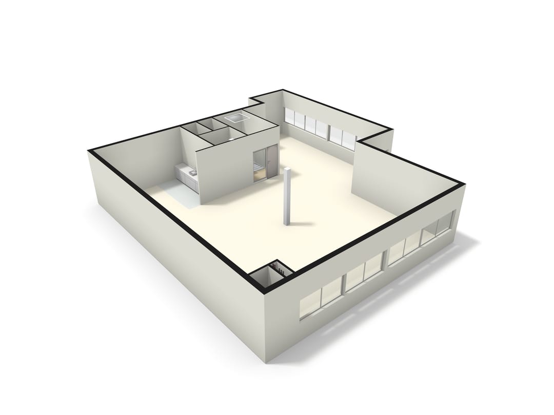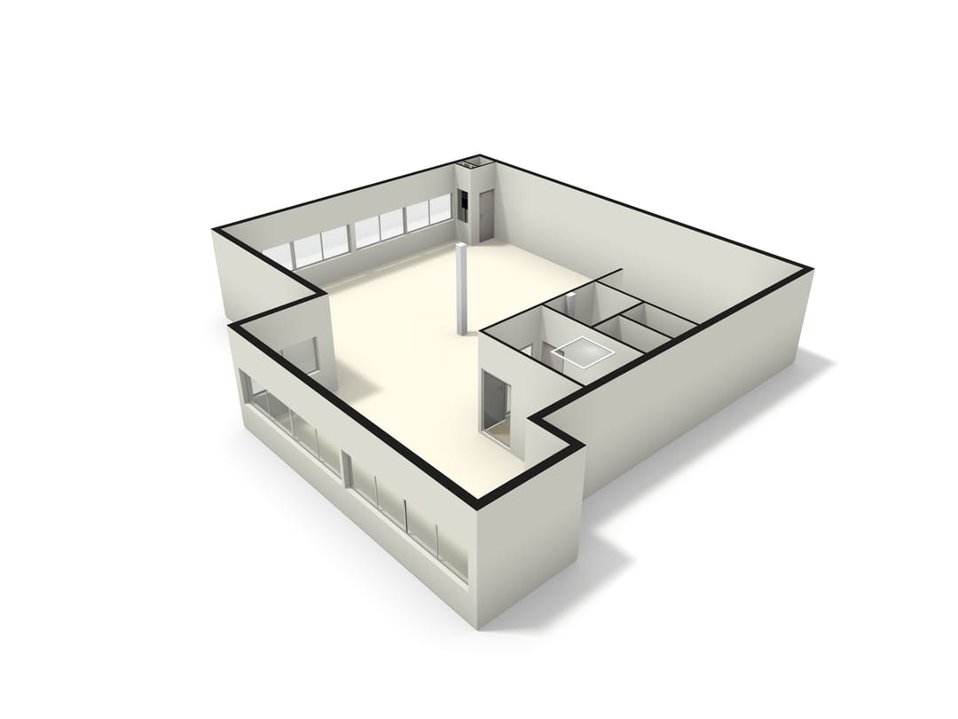 - Huidige (glazen) scheidingswanden t.b.v. kantoor- en belruimtes.