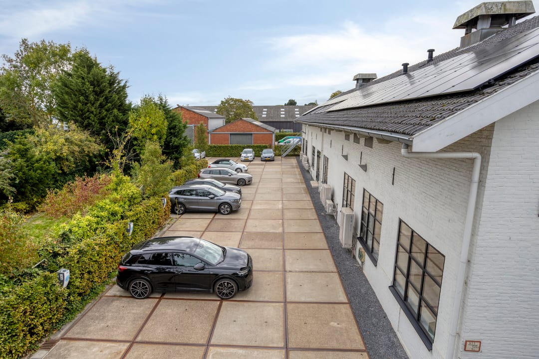 25 parkeerplaatsen met 4 laadvoorzieningen en voldoende ruimte voor parkeergelegenheid op eigen terrein.
