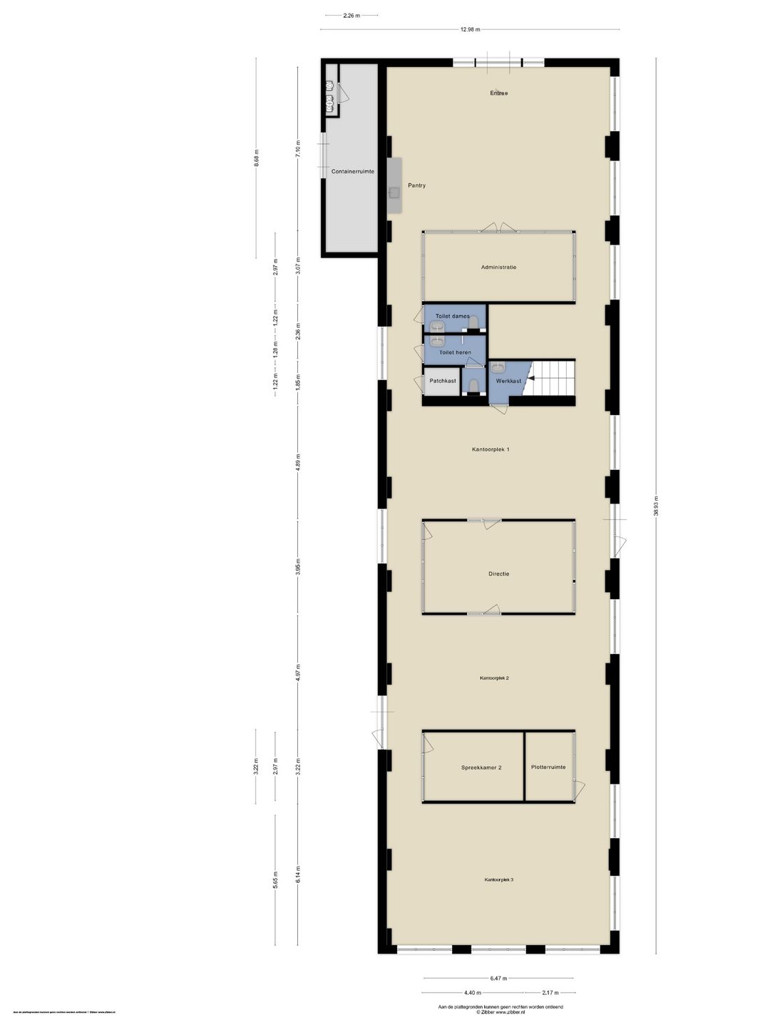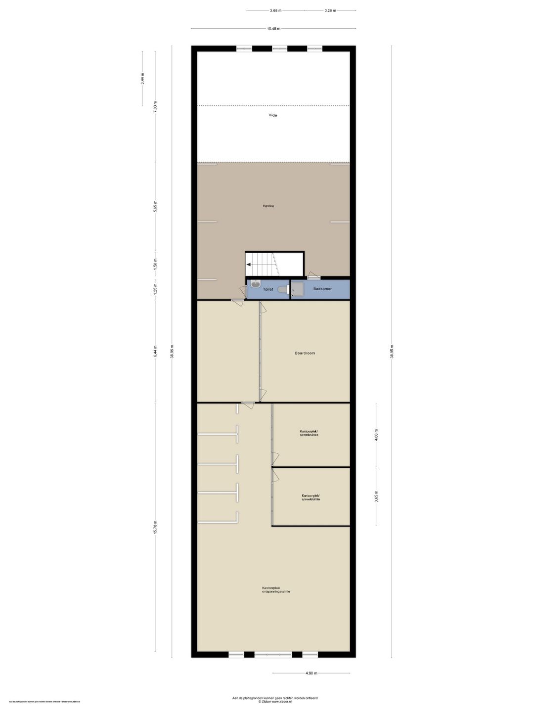 In totaal beschikt het pand over een verhuurbaar vloeroppervlakte van ca. 720 m² Dit is onderverdeeld in: