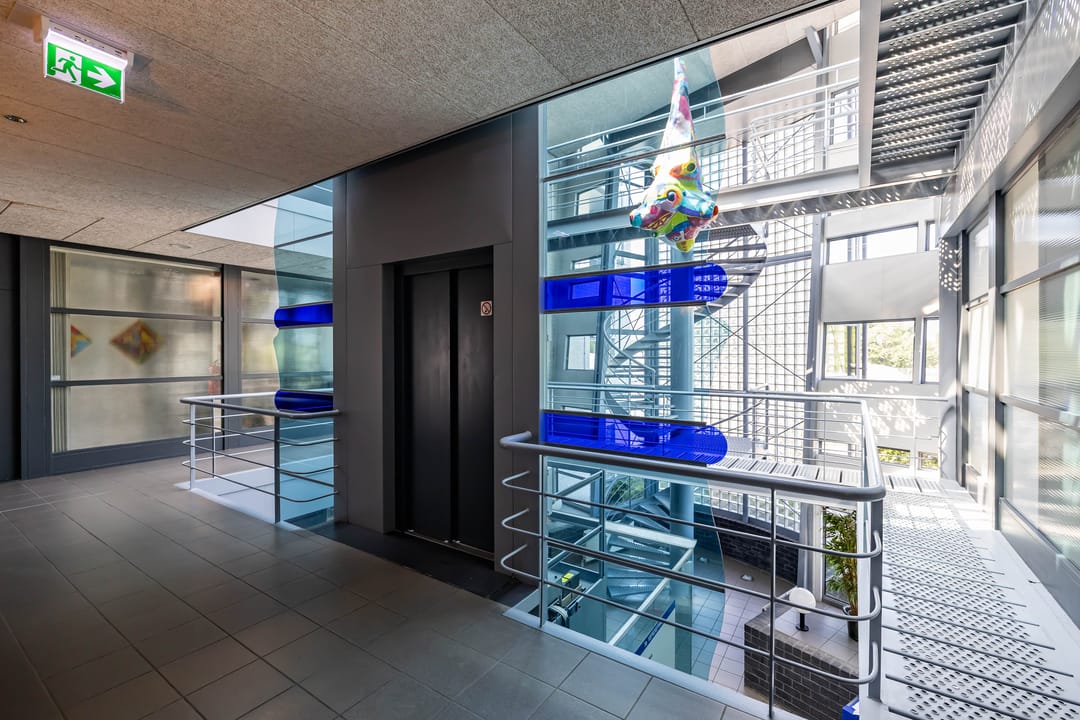 - Mechanical ventilation, built-in fittings, elevators, windows can be opened, cable ducts, modular ceiling, toilet, pantry, heating and room layout