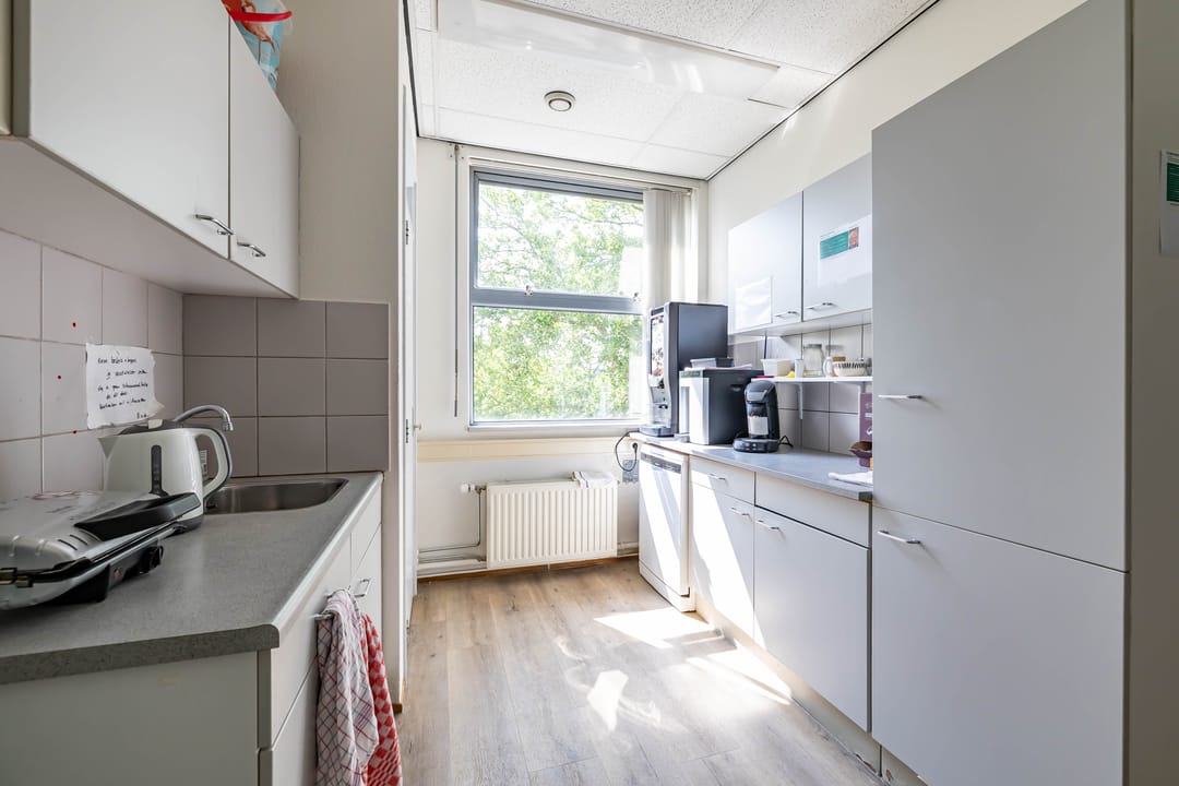 Voorzieningen: sanitaire voorzieningen, pantry, kabelgoten, lift, systeemplafonds met verlichting, scheidingswanden, vloerbedekking.