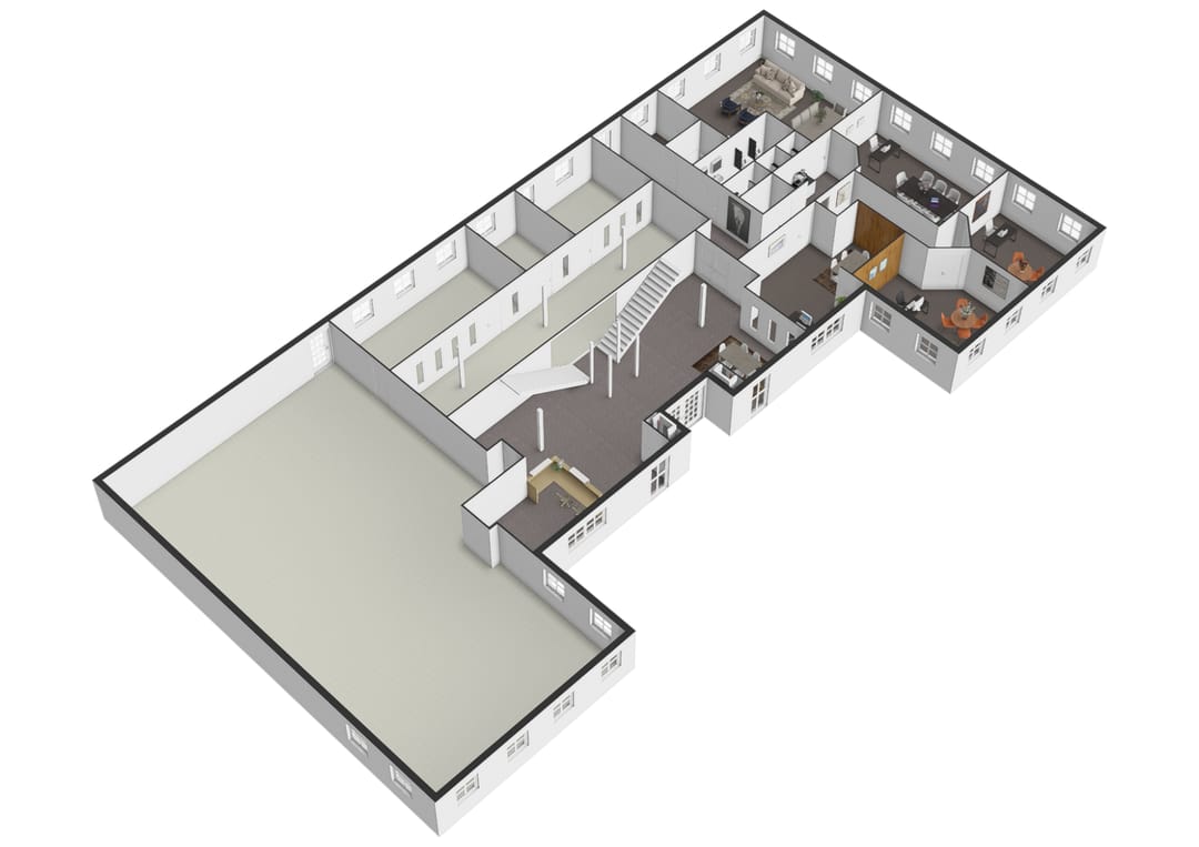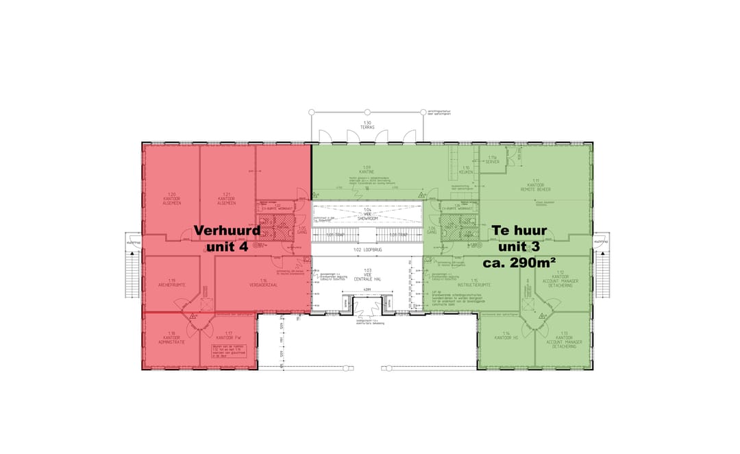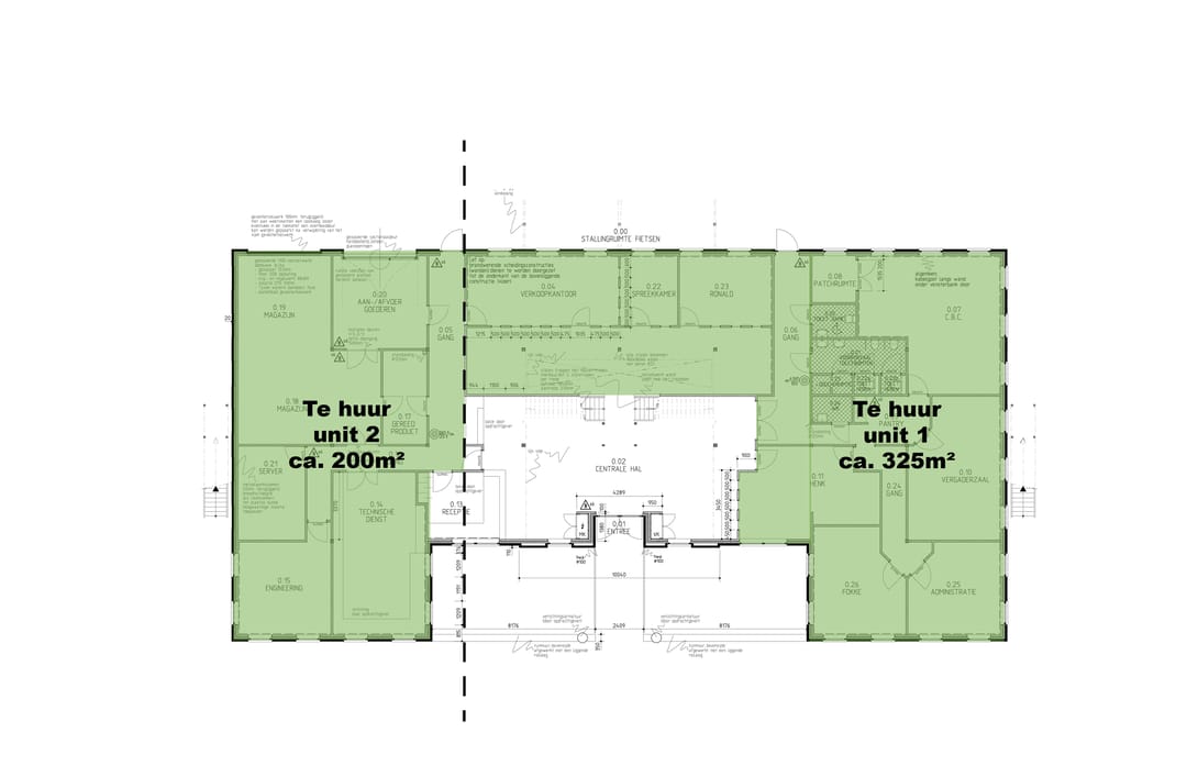 Een deel van het pand is al verhuurd aan een gerenommeerd ICT-bedrijf. Hierdoor wordt onder andere de ontvangsthal en het buitenterrein gezamenlijk gebruikt, wat zorgt voor een professionele en representatieve werkomgeving.