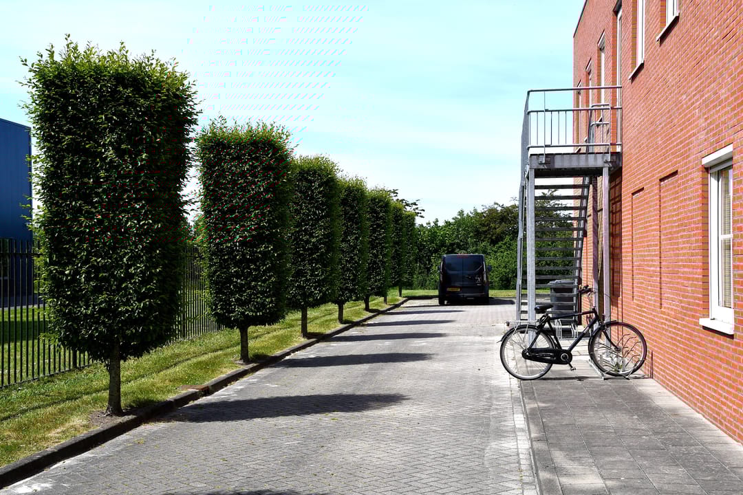 Het buitenterrein is volledig bestraat en aan beide zijden van het gebouw toegankelijk.