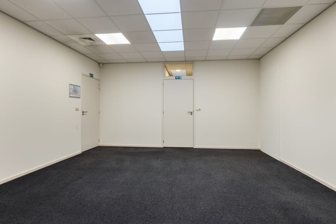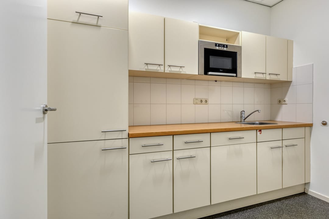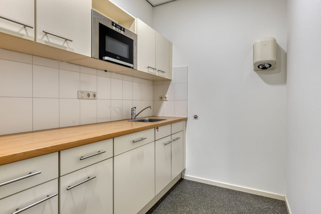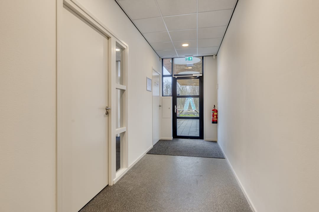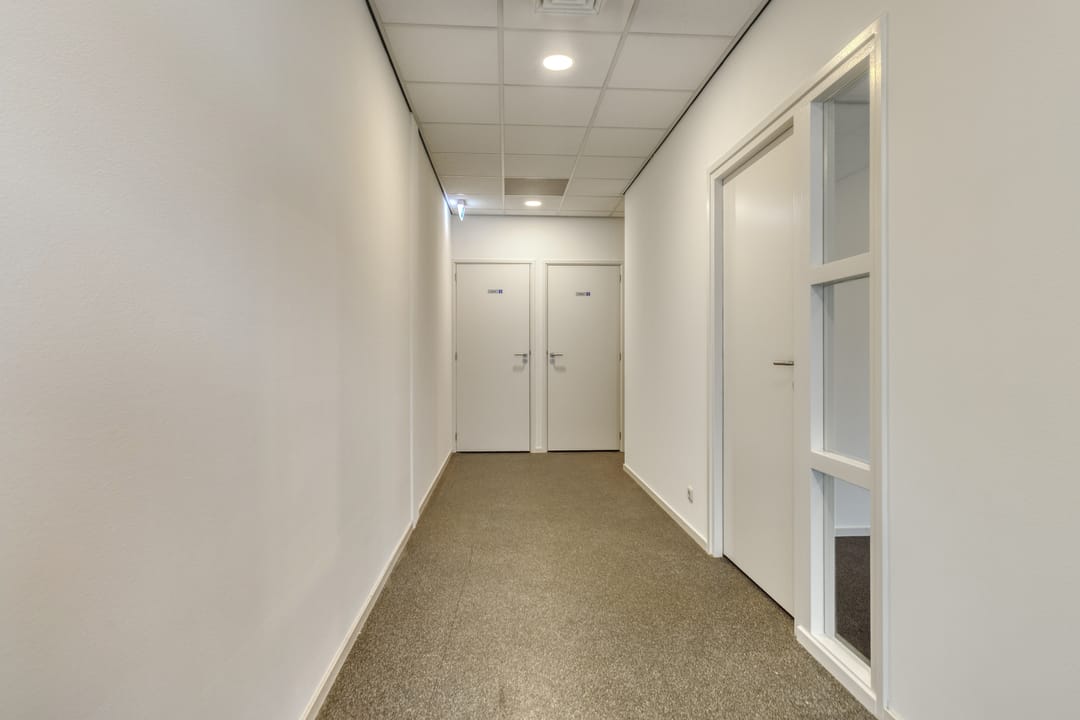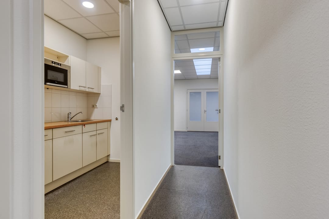 Entree/hal met toilet, een afgesloten keuken met inbouwapparatuur en meerdere kantoor-/spreek- en vergaderruimtes, ideaal voor diverse bedrijfsactiviteiten.