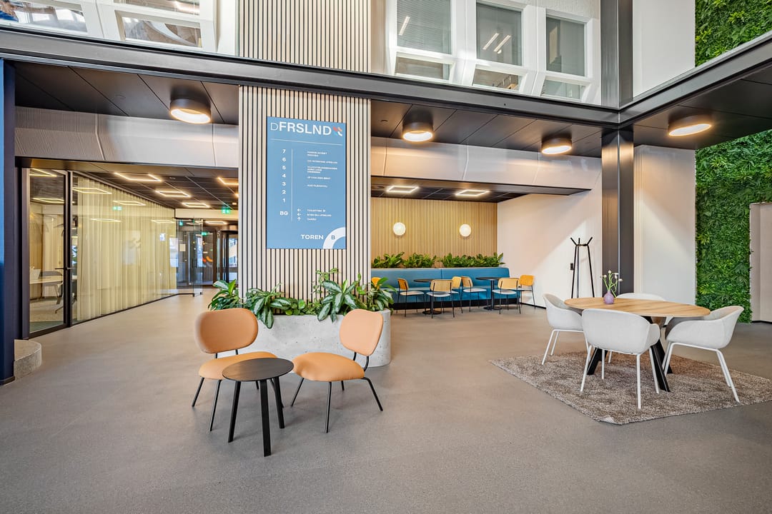 • Vergaderruimtes in het atrium kunnen ingepland worden via de App dFRSLND