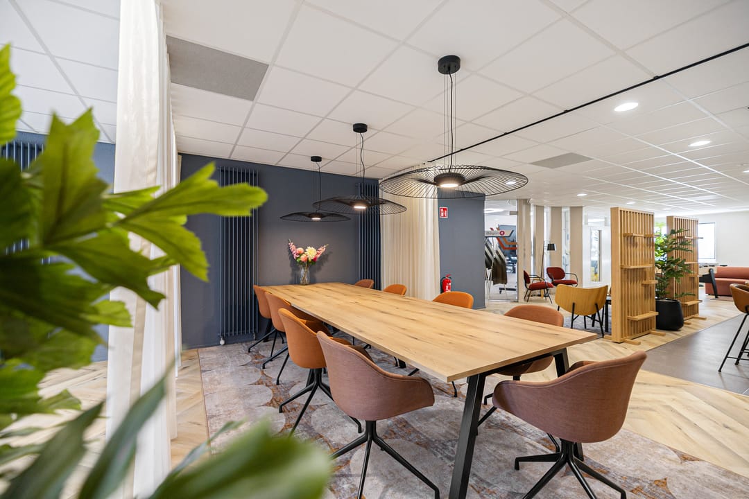 • Meubilairpakket bestaande uit 2, 4 of 6 werkplekken, 2 schuifdeurkasten, een zitje, een lamp en een aantal planten