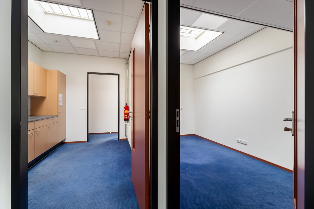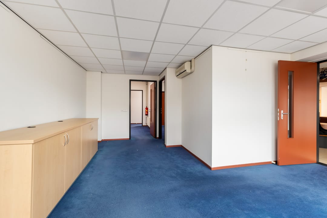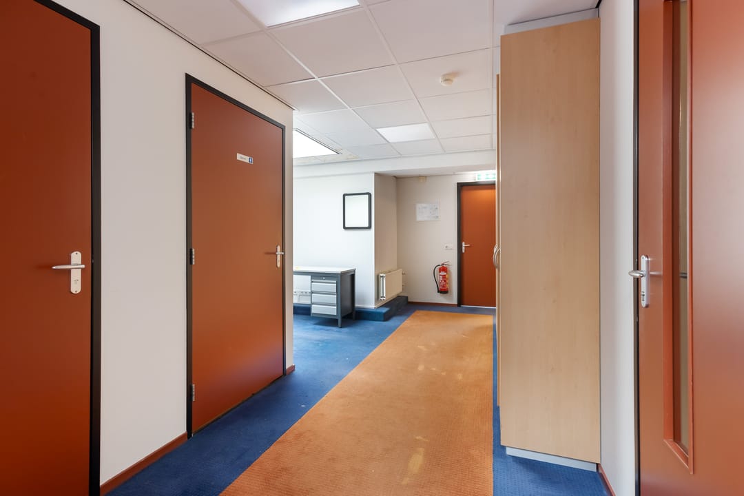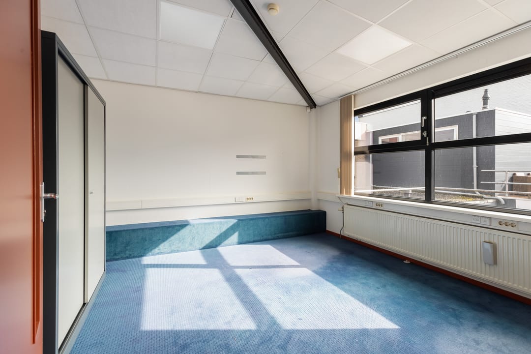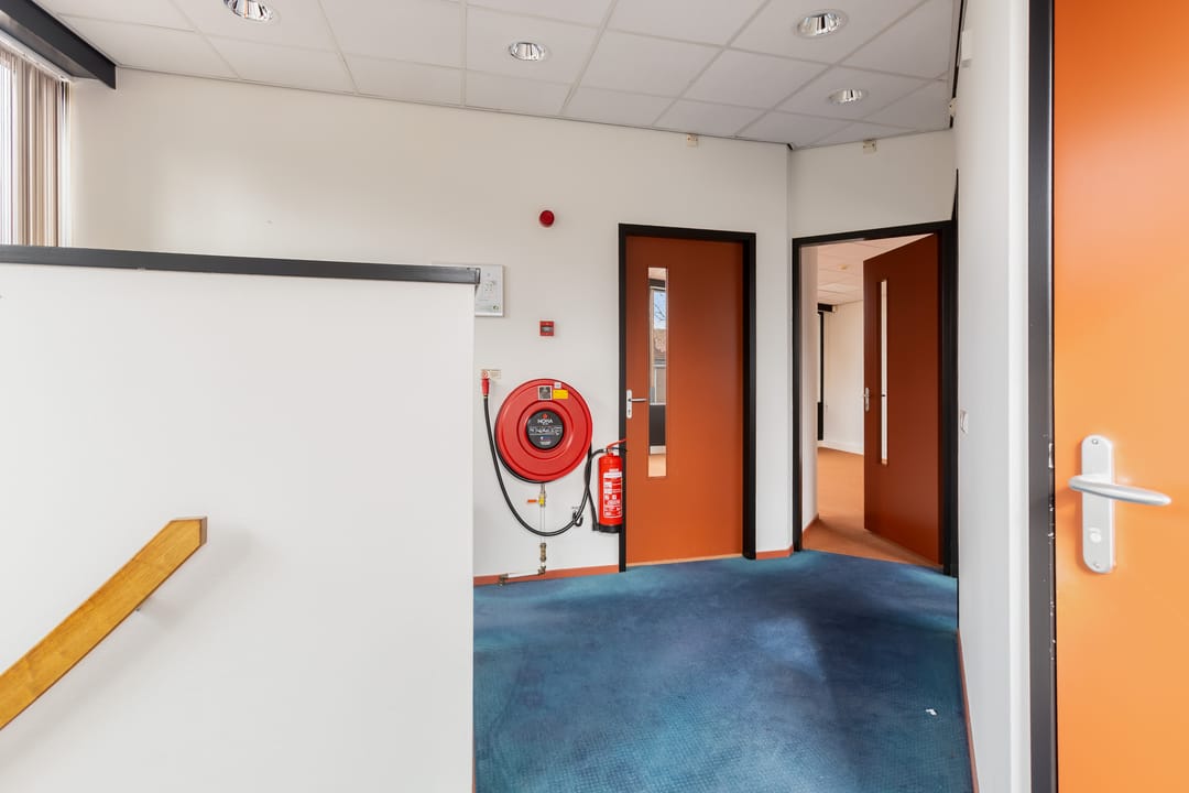 De verdieping kenmerkt zich door de prettige lichtinval en het open karakter. Hier bevinden zich aanvullende kantoorruimtes, waaronder een directiekamer en een extra werkruimte. Via de overloop is tevens het dakterras bereikbaar, een fijne buitenruimte die bijvoorbeeld kan dienen als pauzeplek voor medewerkers.