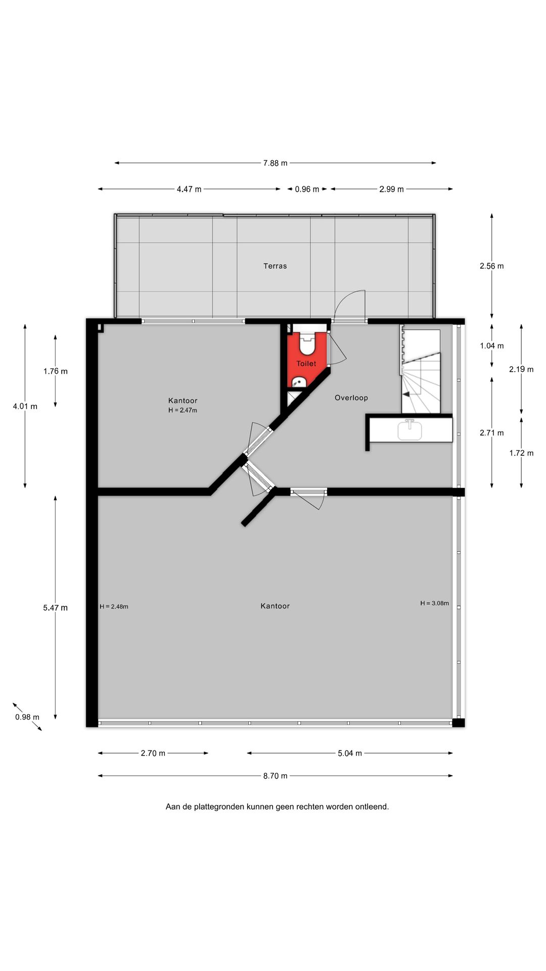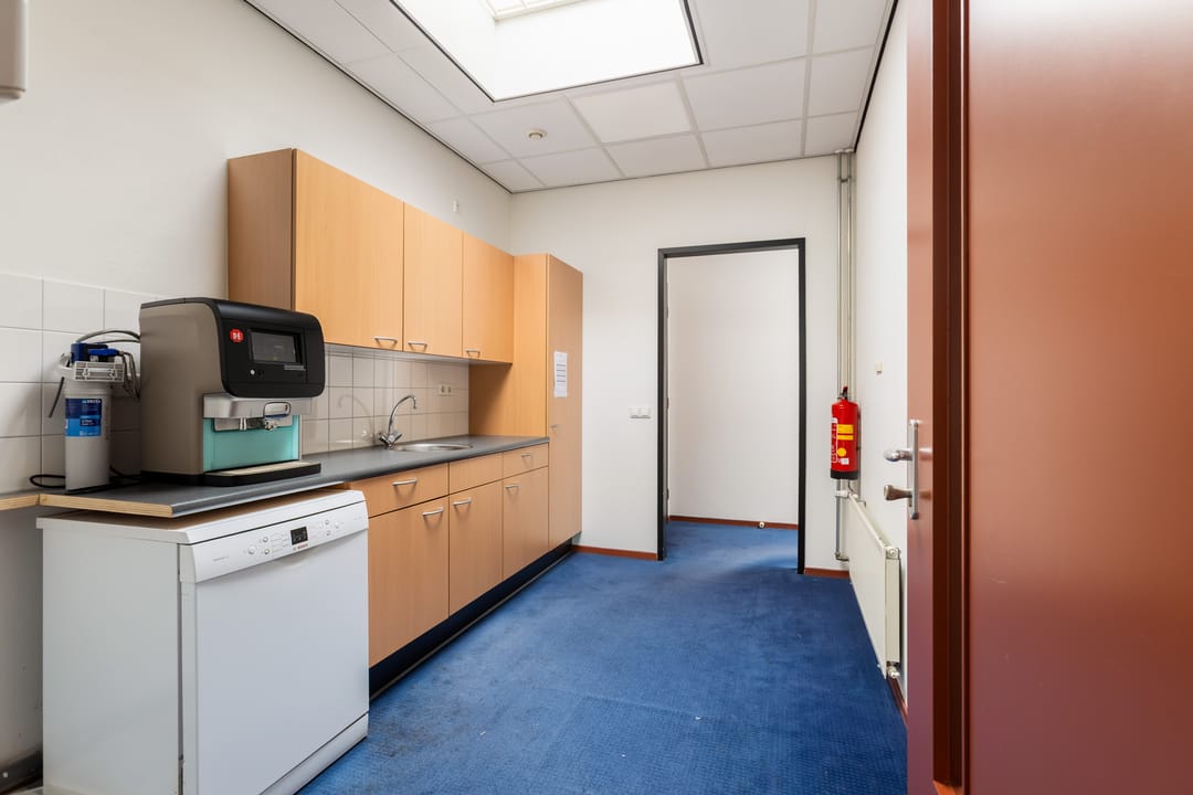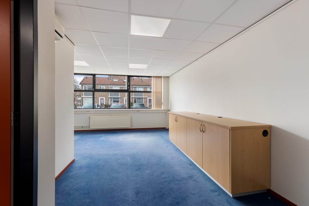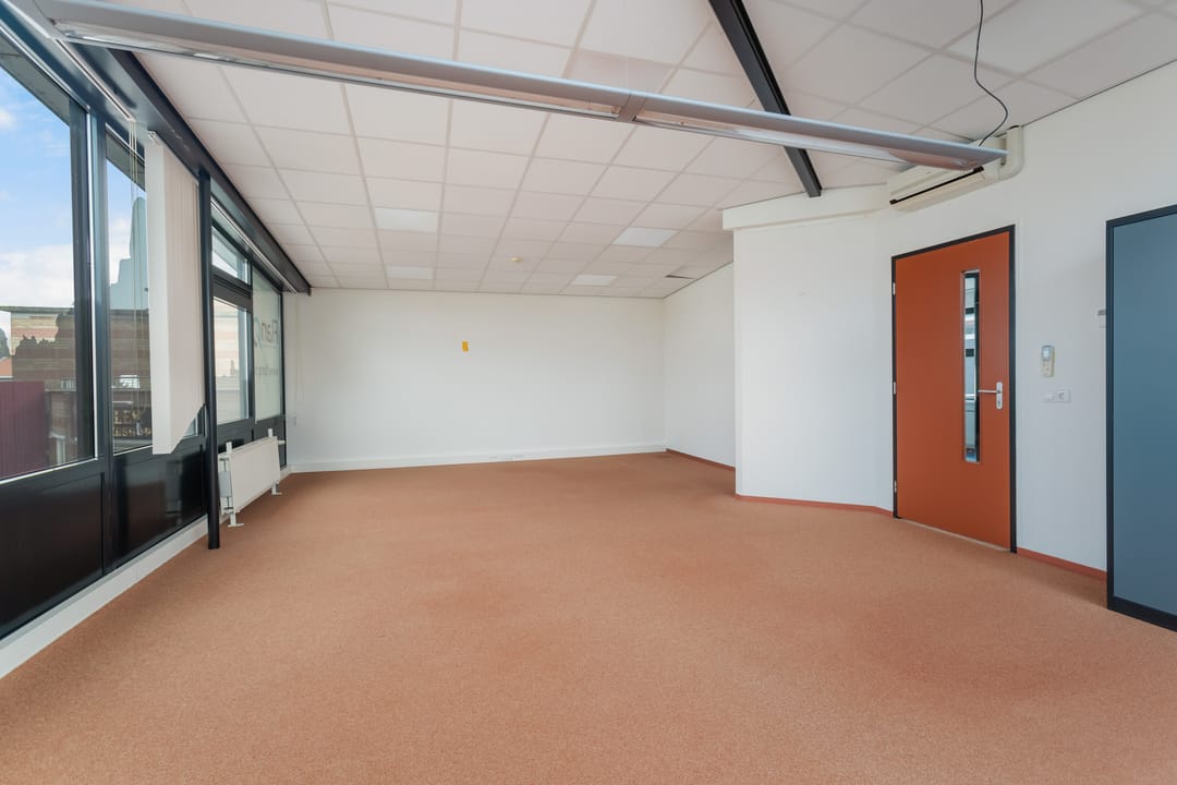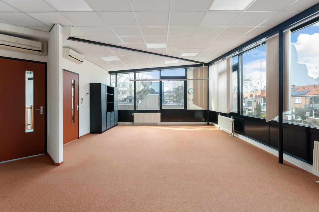 De verdieping kenmerkt zich door de prettige lichtinval en het open karakter. Hier bevinden zich aanvullende kantoorruimtes, waaronder een directiekamer en een extra werkruimte. Via de overloop is tevens het dakterras bereikbaar, een fijne buitenruimte die bijvoorbeeld kan dienen als pauzeplek voor medewerkers.