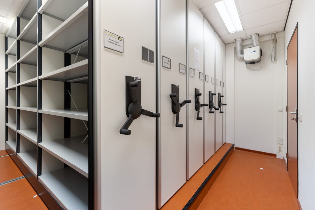 Verder beschikt de begane grond over een keuken, een archiefruimte/opslagruimte en meerdere sanitaire voorzieningen, waaronder een Miva-toilet. Via een interne hal zijn alle ruimtes logisch met elkaar verbonden. Ook bevindt zich hier de trapopgang naar de verdieping en een tweede uitgang aan de zijkant van het gebouw.