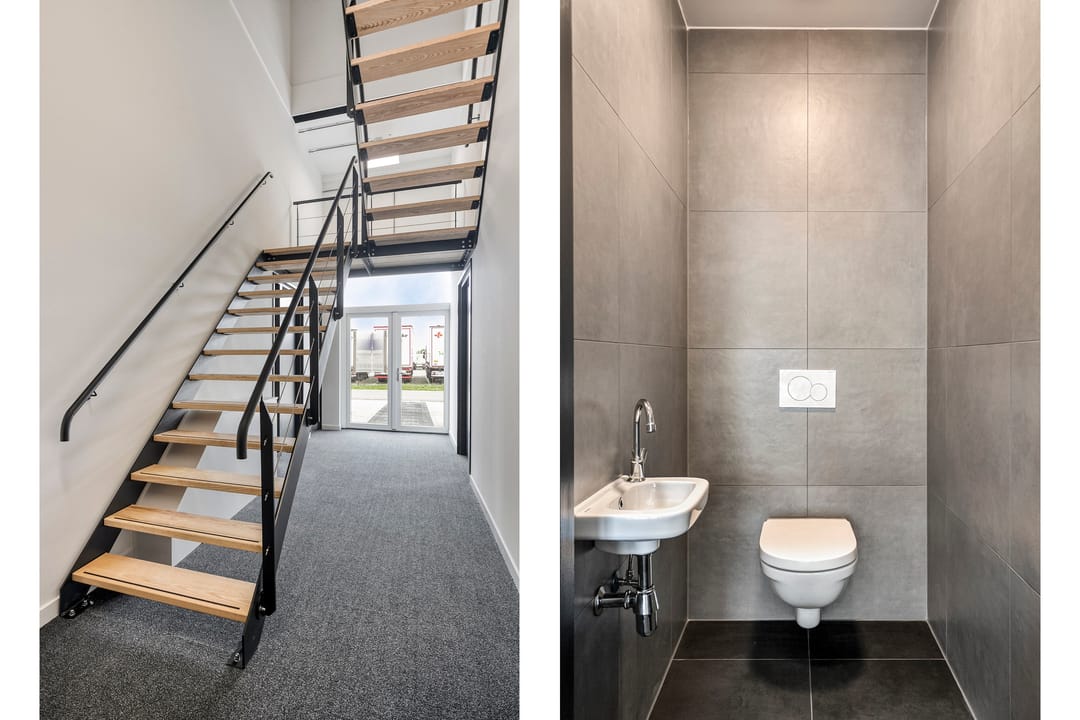 Op de begane grond is er een bedrijfsruimte gerealiseerd met een bijbehorende kantoorruimte. Eventueel is deze ook bij de kantoorruimte te huren.