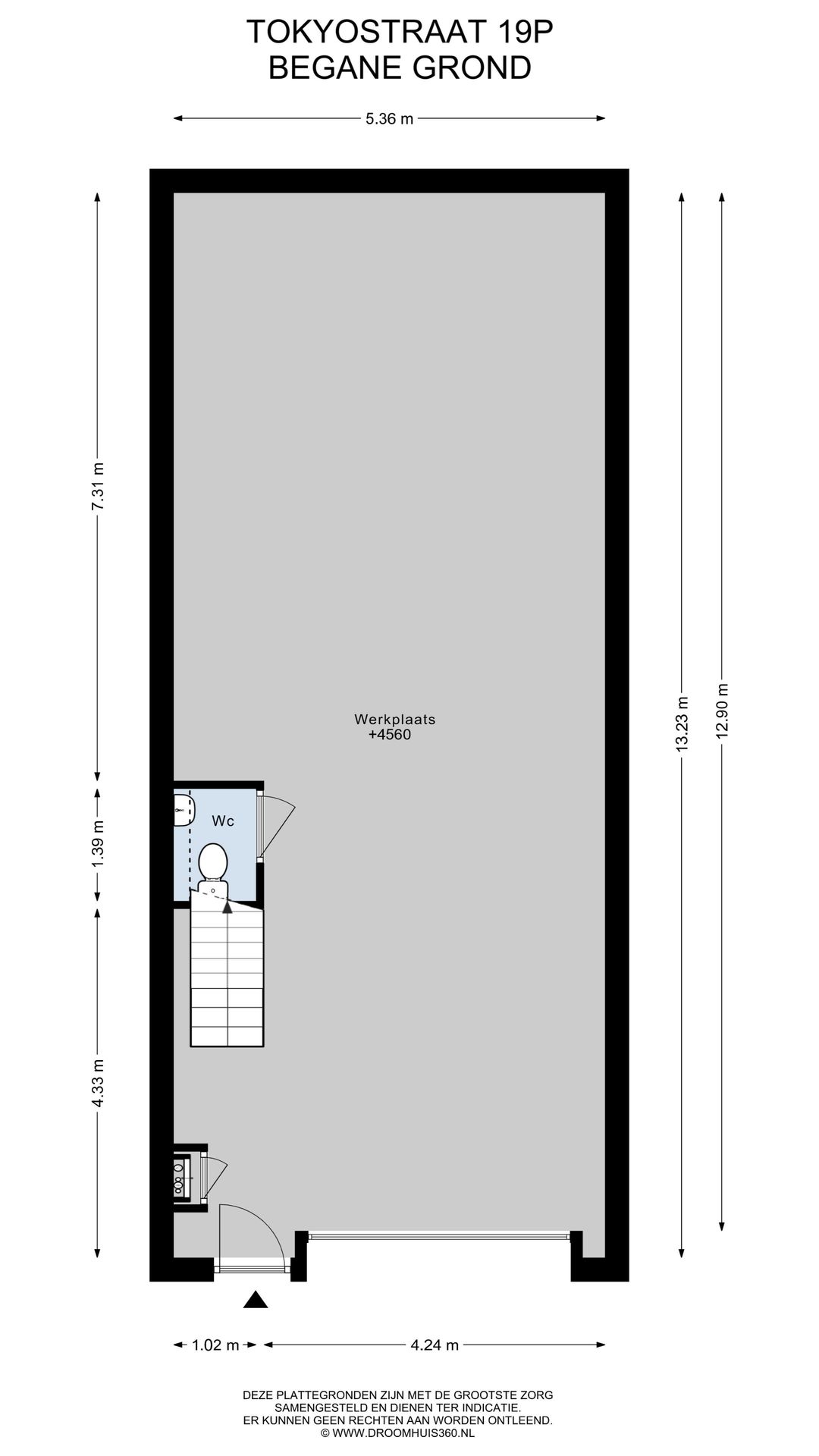 De bedrijfsunit bestaat uit 2 bouwlagen. De eerste bouwlaag is ingericht als opslagruimte en beschikt over een overheaddeur en een toilet. De tweede bouwlaag is ingericht als kantoor en is voorzien van een open keuken.