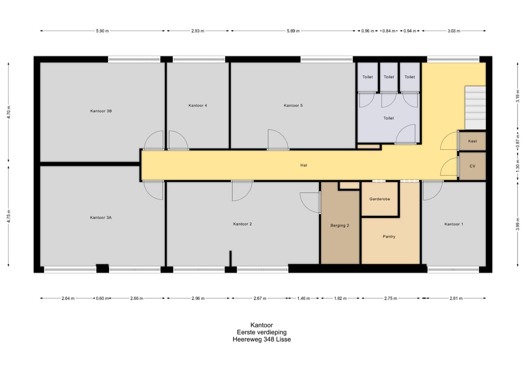 In het representatieve verzamelgebouw 'Het Ondernemershuis' bieden wij twee nette kantoorkamers aan van in totaal circa 48 m² gelegen op de eerste verdieping. Je maakt gebruik van gezamenlijke voorzieningen zoals de keuken, toiletten en een spreekkamer op de begane grond, wat deze plek ideaal maakt voor ondernemers die professioneel en verzorgd willen werken.